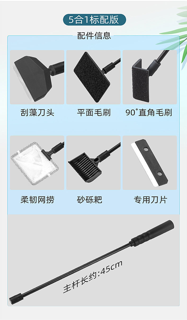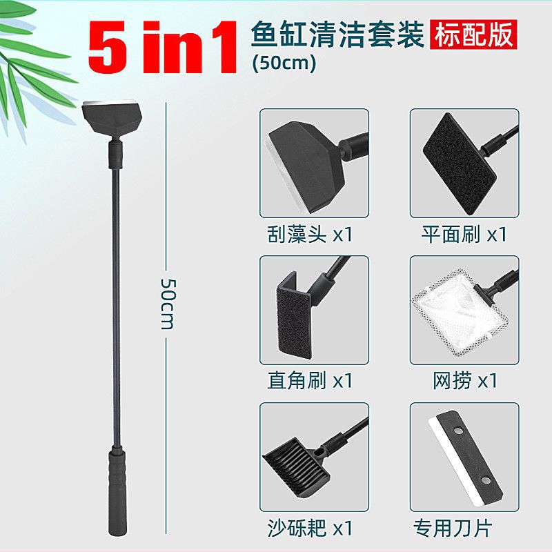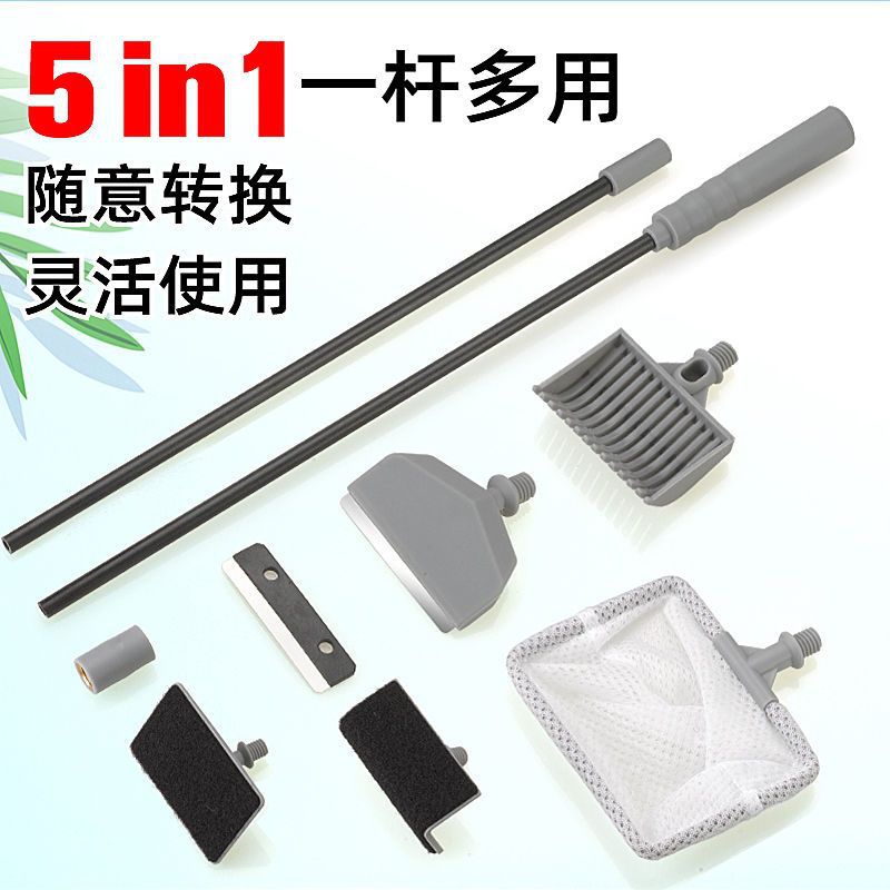 물고기 탱크 청소 세트 물고기 탱크 브러시 수족관 5 대 1 청소 도구 낚시 그물 긁어 죽은 모서리 없음 조류 칼 청소