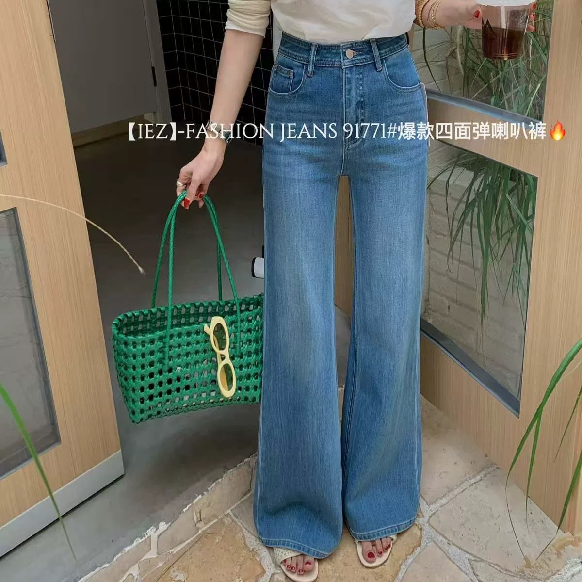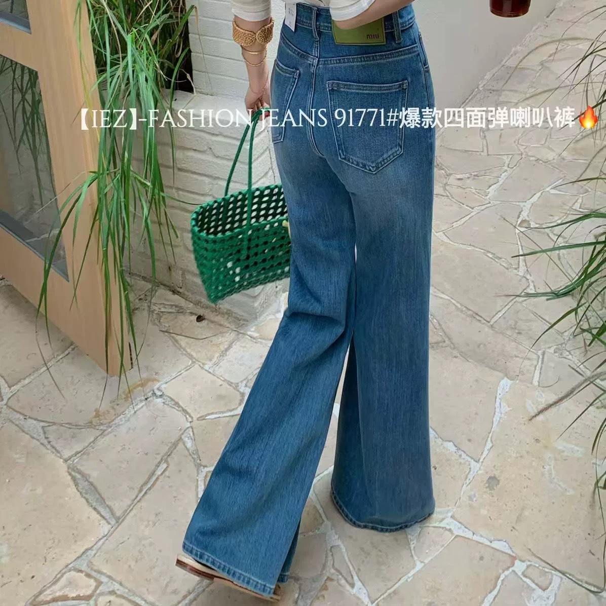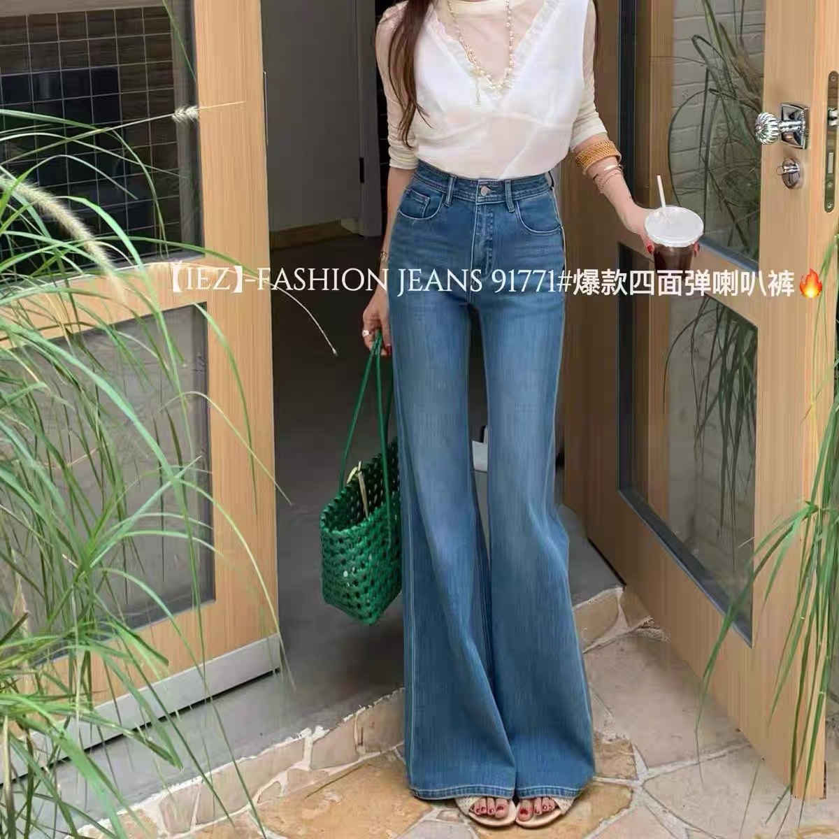 다크 블루 높은 허리 느슨한 마이크로 라 청바지 여성의 여름 유럽산 다리 스트레치 캐주얼 트럼펫 바지스토어 가기