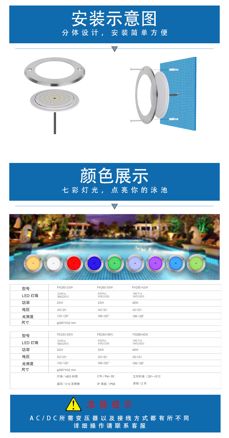 국경 간 스테인레스 스틸 얇은 LED 풀 조명 AC12V 수중 조명 벽걸이 형 방수 IP68 2 년 보증스토어 가기