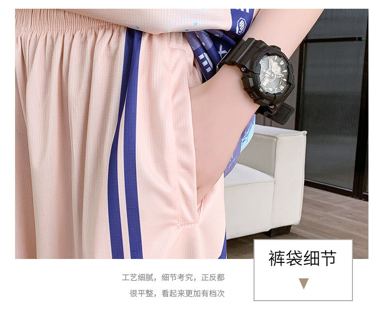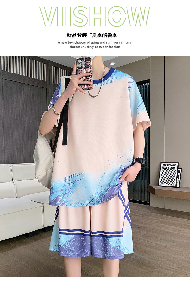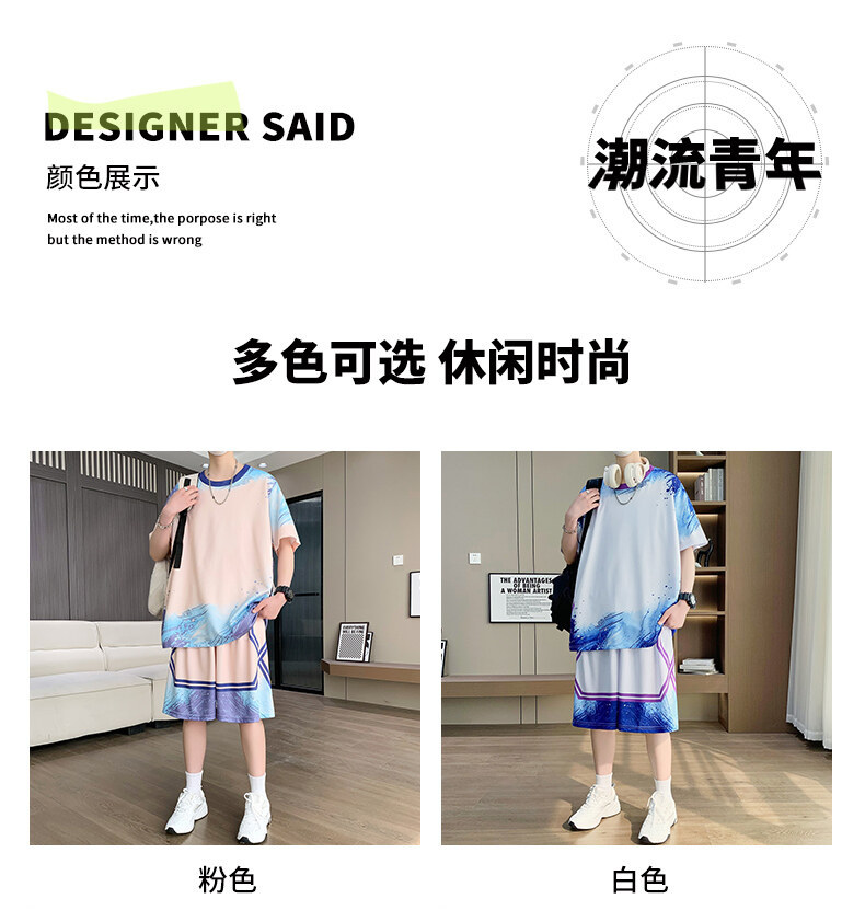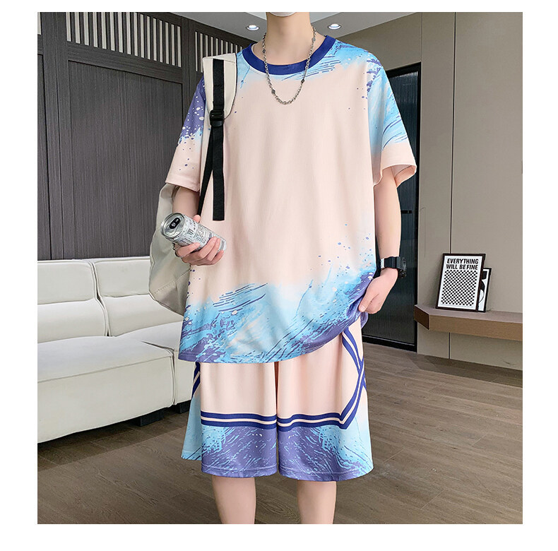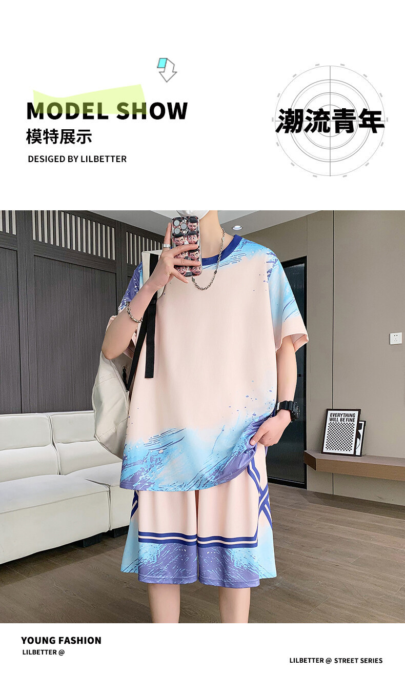여름 반소매 스포츠 세트 십대 남성 느슨한 빠른 건조 옷 절반 길이 바지 대비 컬러 투피스 학생 농구 옷스토어 가기