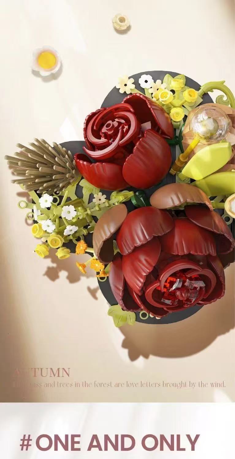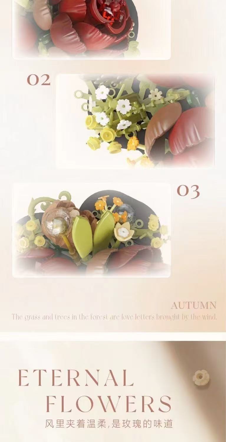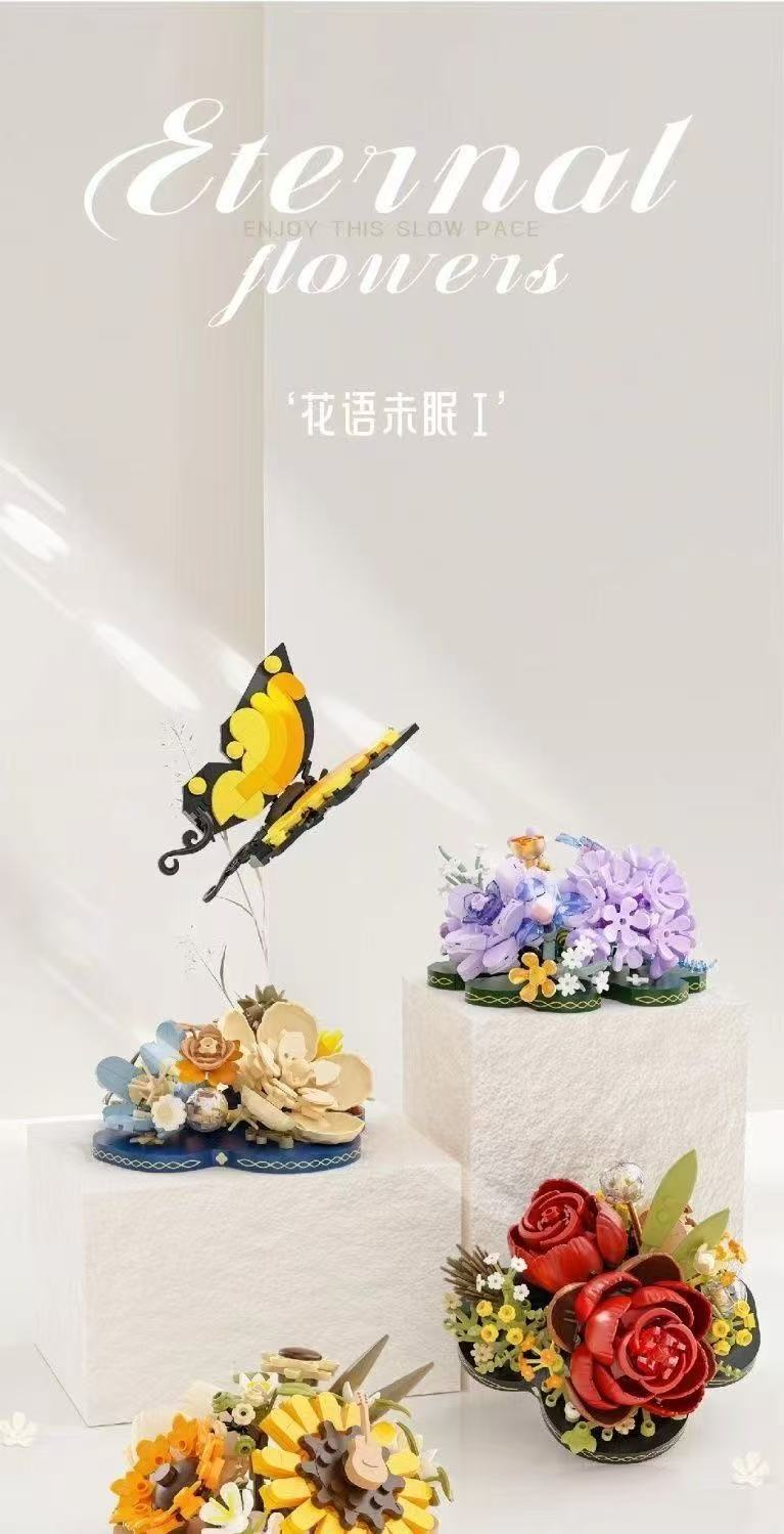브릭 미니 입자 2159-62 꽃 언어 잠자는 영원한 꽃 입체 장식품 소녀 선물 조립 빌딩 블록