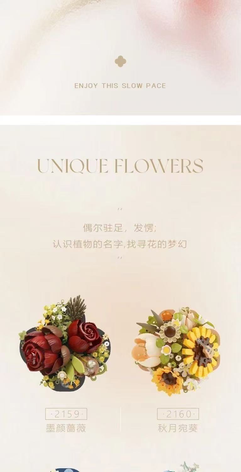 브릭 미니 입자 2159-62 꽃 언어 잠자는 영원한 꽃 입체 장식품 소녀 선물 조립 빌딩 블록스토어 가기
