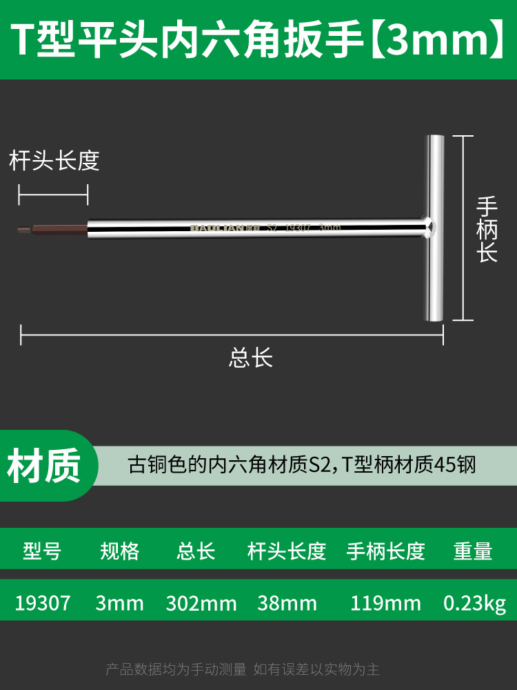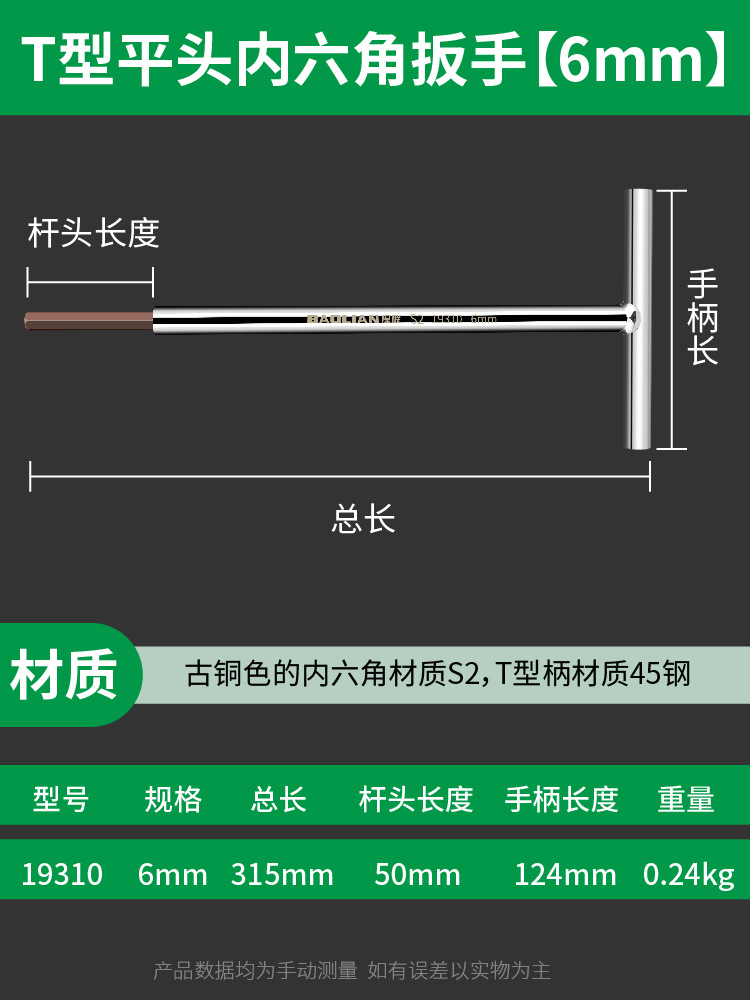 Baolian T 자형 확장 육각 렌치 초경강 육각 나사 도구 칼 3 4 5 6mm 탄소 8극스토어 가기