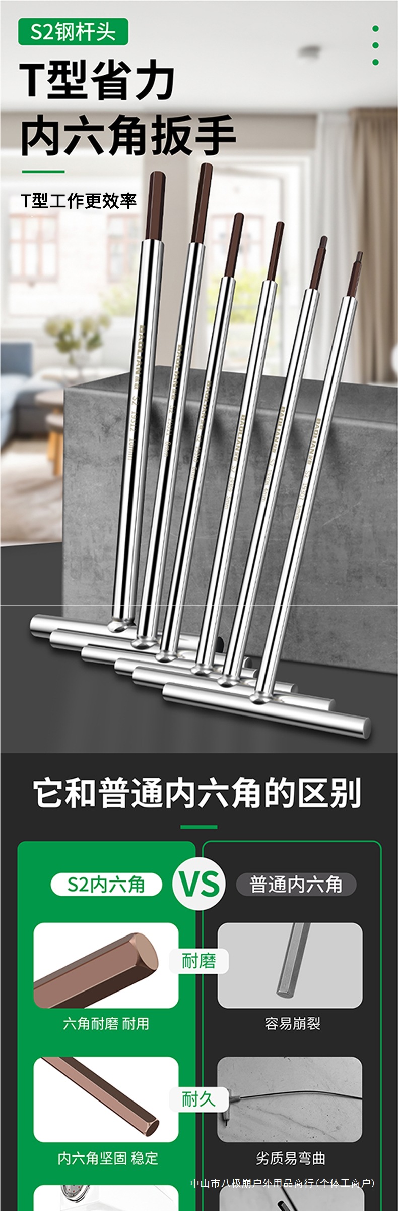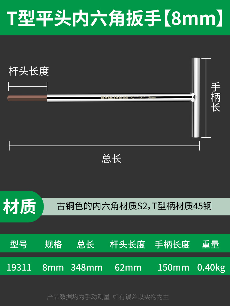 Baolian T 자형 확장 육각 렌치 초경강 육각 나사 도구 칼 3 4 5 6mm 탄소 8극