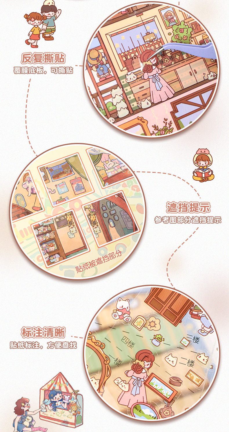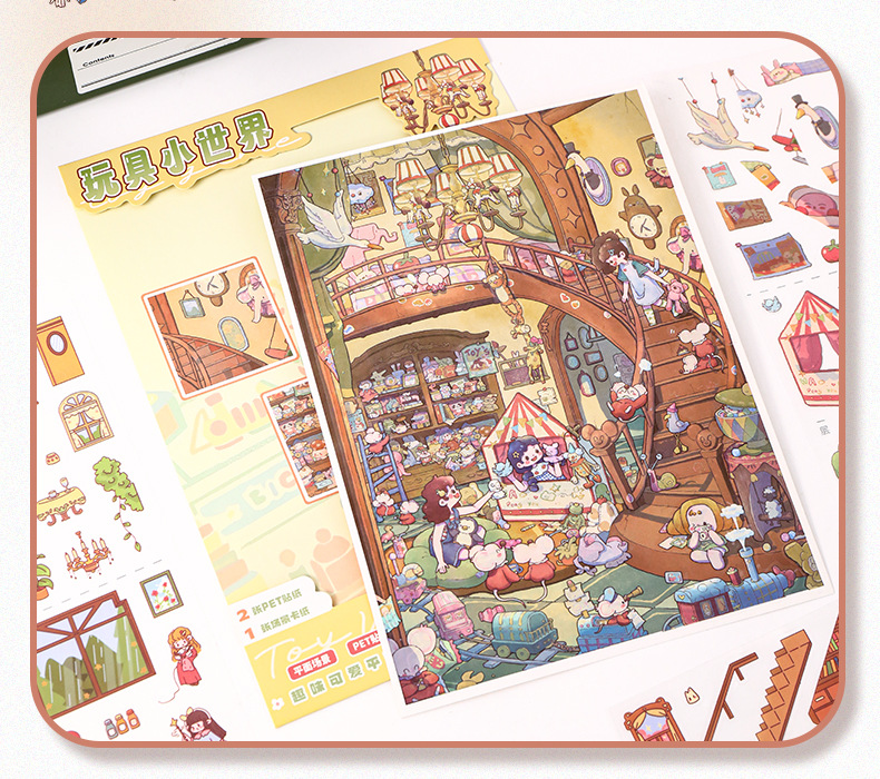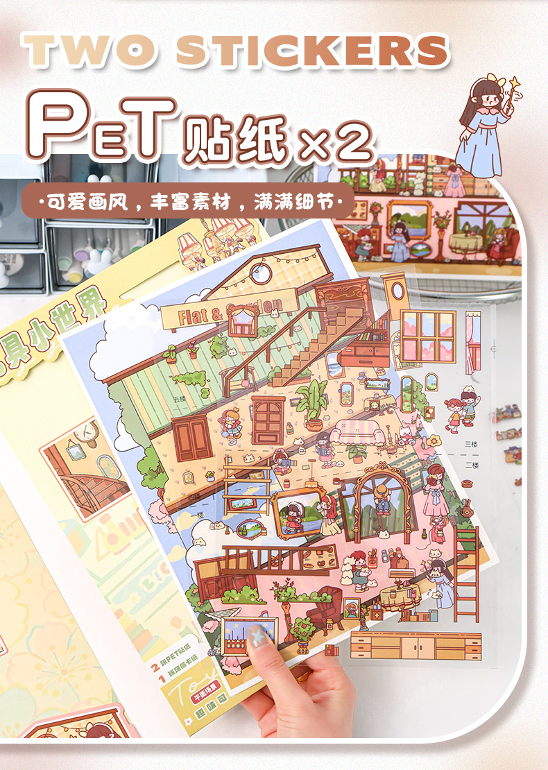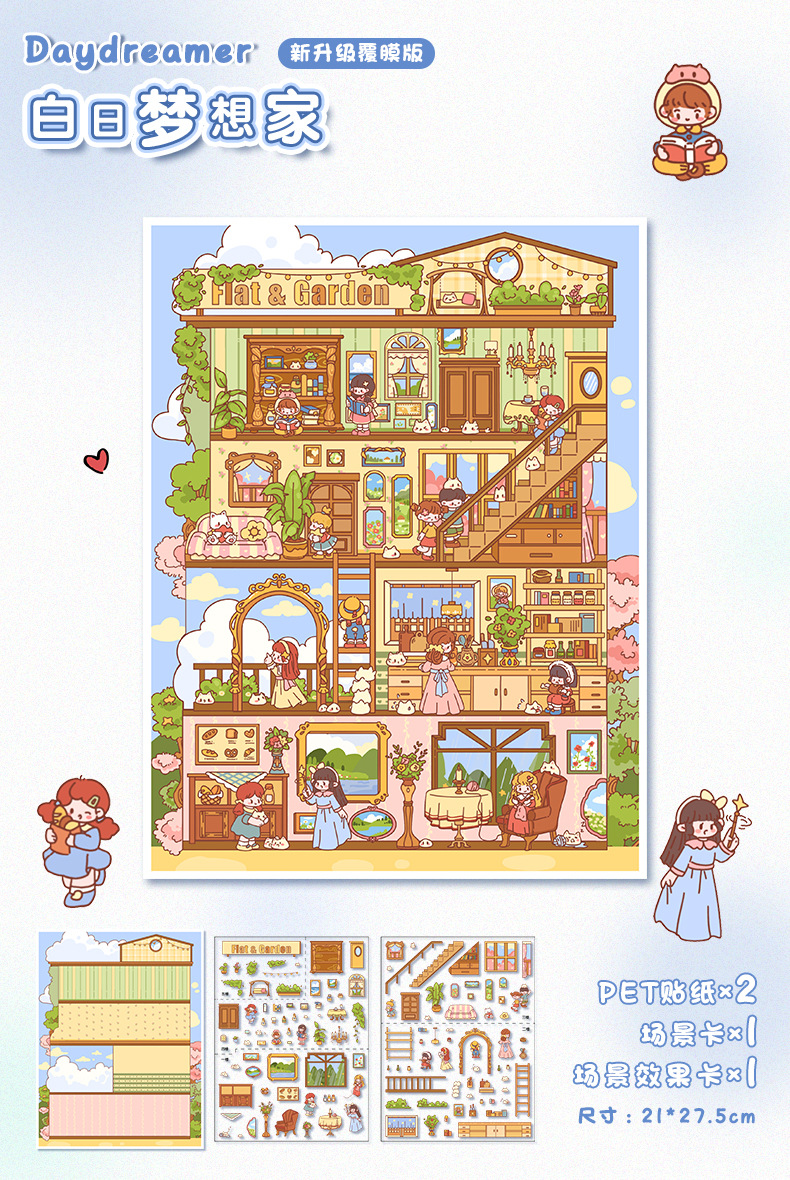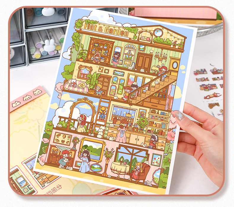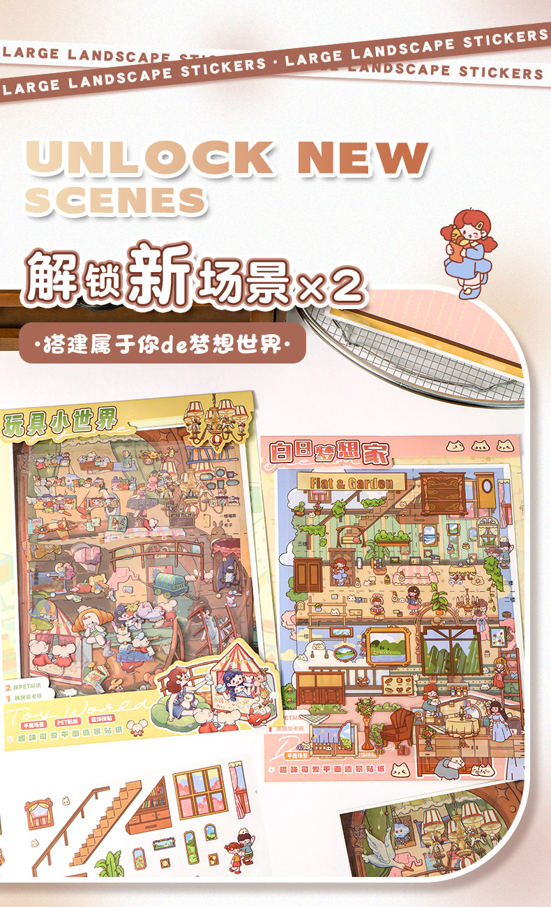 대형 평면 조경 스티커 재미있는 소형 장면 스티커 수제 DIY 3 차원 캐빈 3D 시각적 스티커스토어 가기