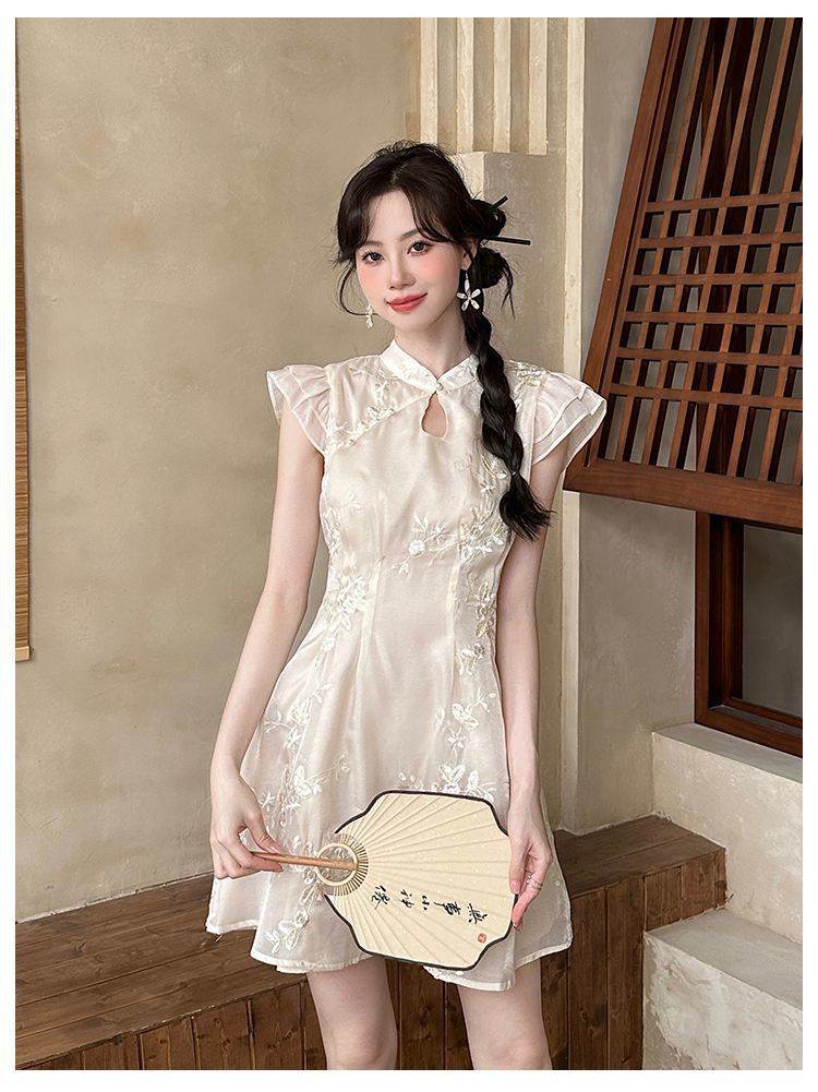 새로운 중국 스타일 국가 스타일 민소매 원피스 여성 여름 키 큰 청삼 중공업 자수 스커트 시대 감소 틈새 스커트