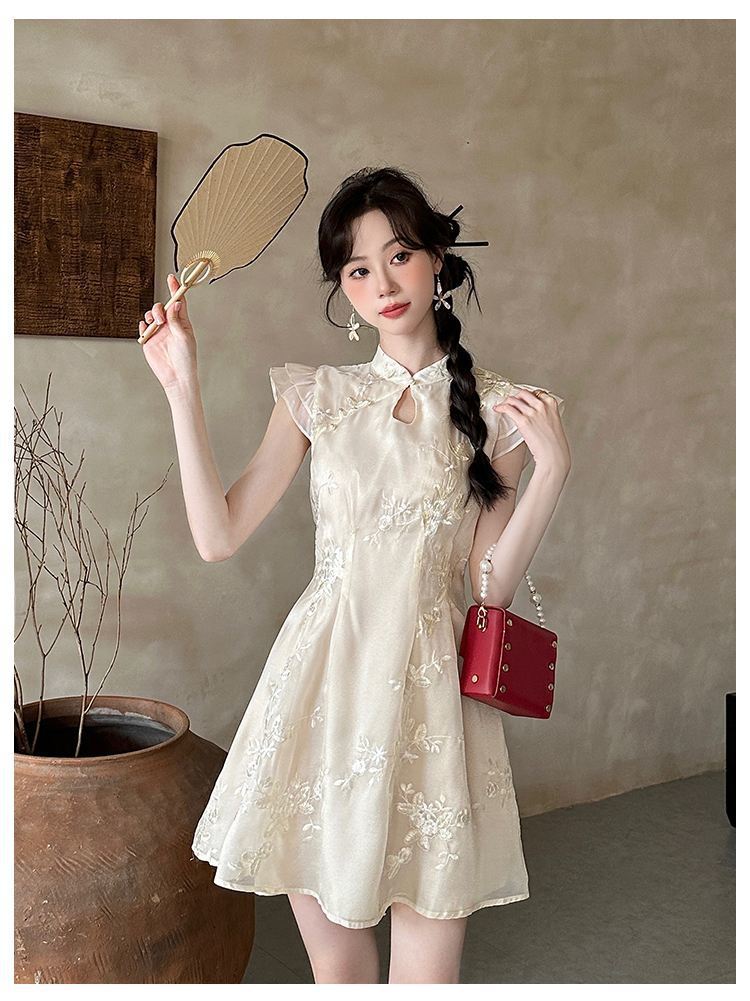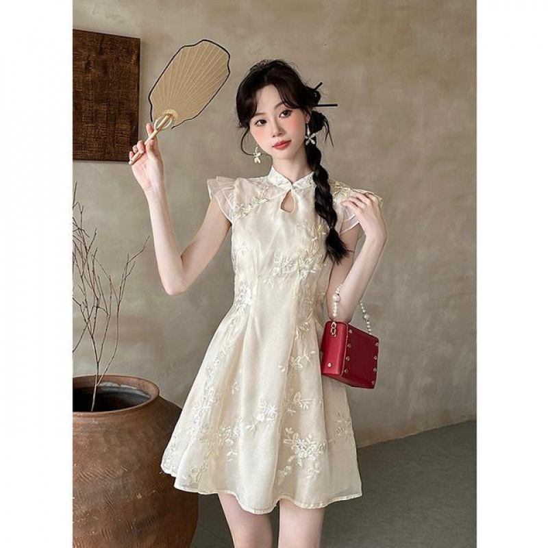 새로운 중국 스타일 국가 스타일 민소매 원피스 여성 여름 키 큰 청삼 중공업 자수 스커트 시대 감소 틈새 스커트스토어 가기