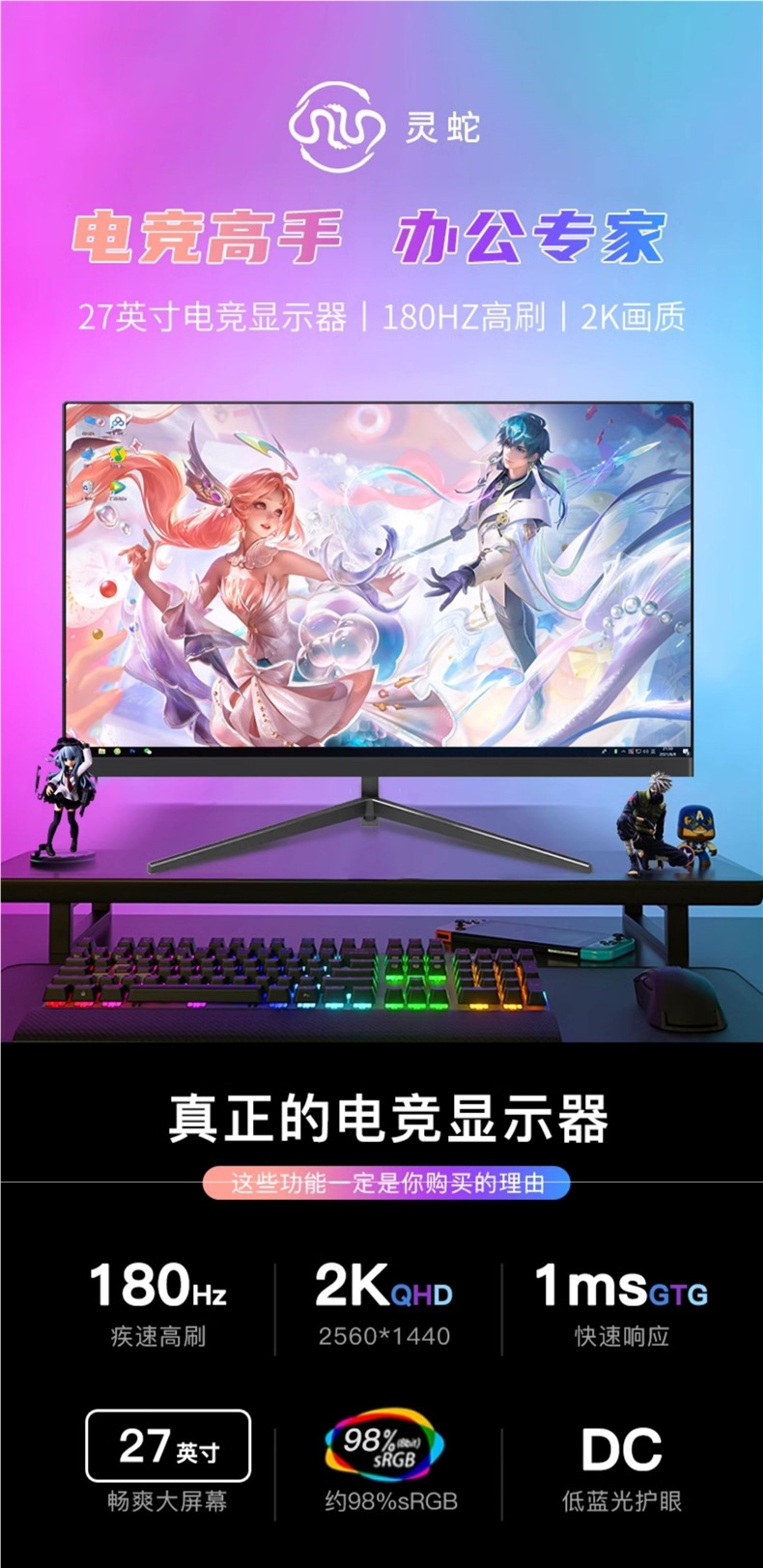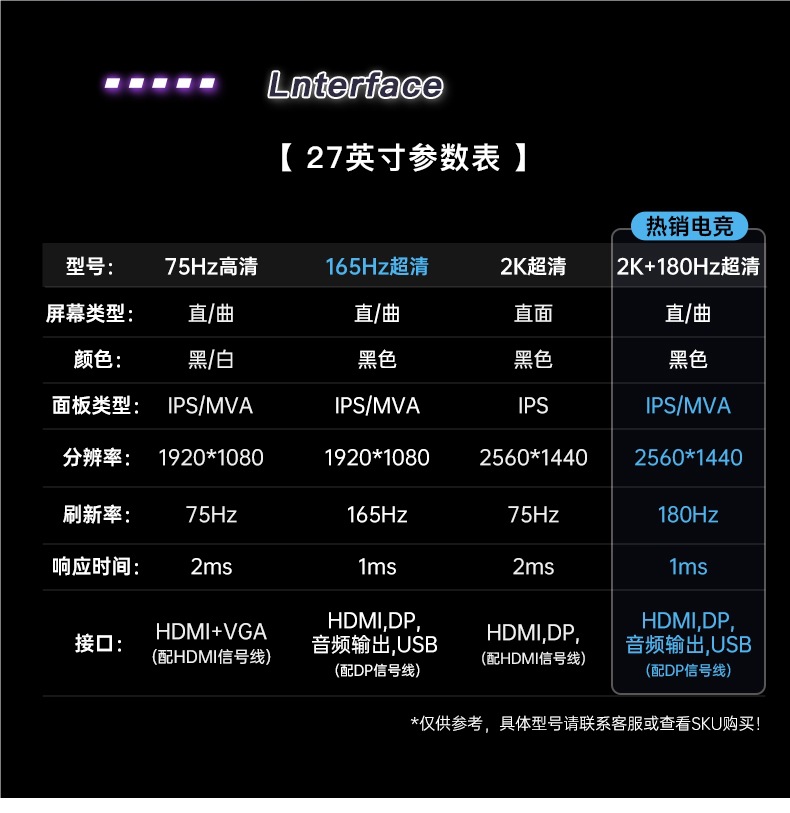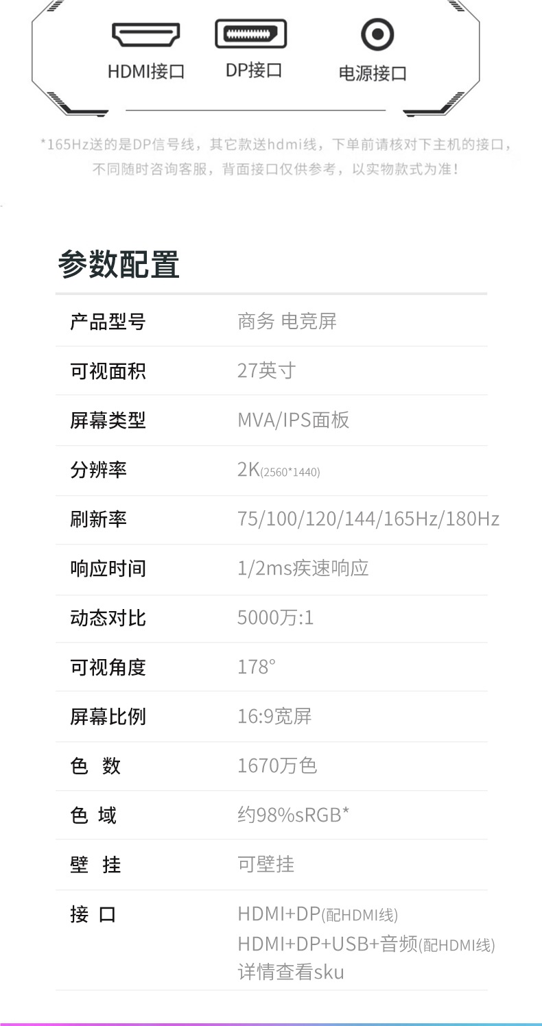 • 27inch 대면 블랙 [2K 울트라 클리어 + 180Hz 하이 레이트 게이밍] - 공식 표준 구성