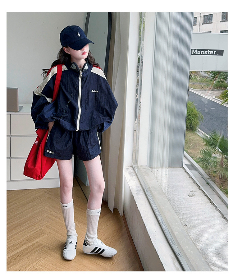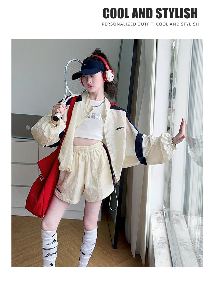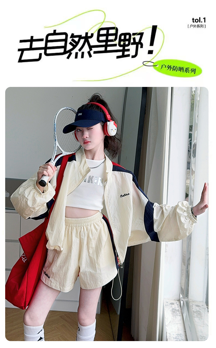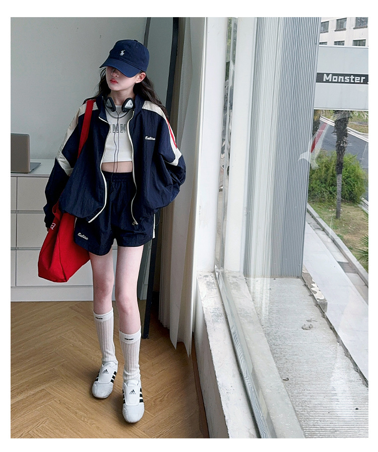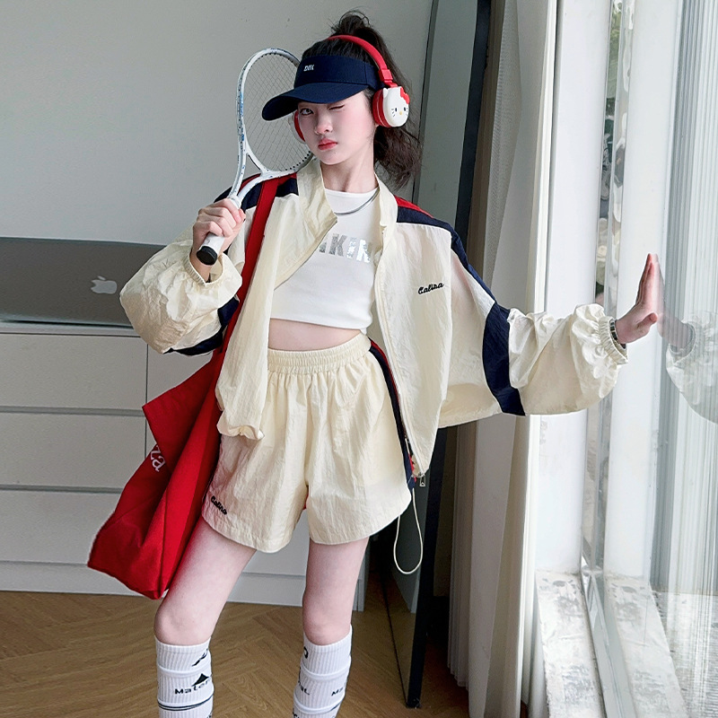 국경 간 소녀 캐주얼 스포츠 세트 2025 여름 새로운 서양식 소녀 얇은 선 스크린 반바지 세트스토어 가기
