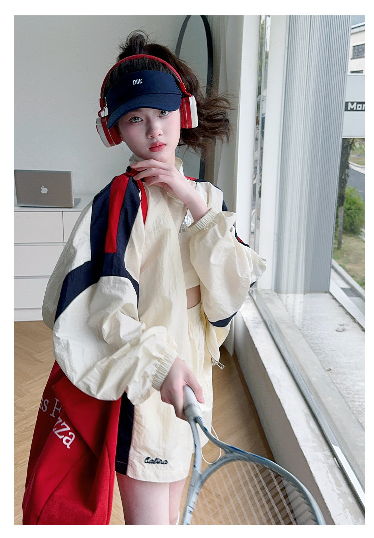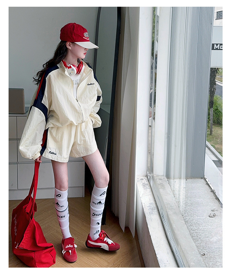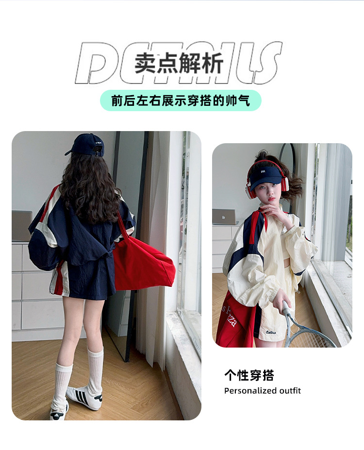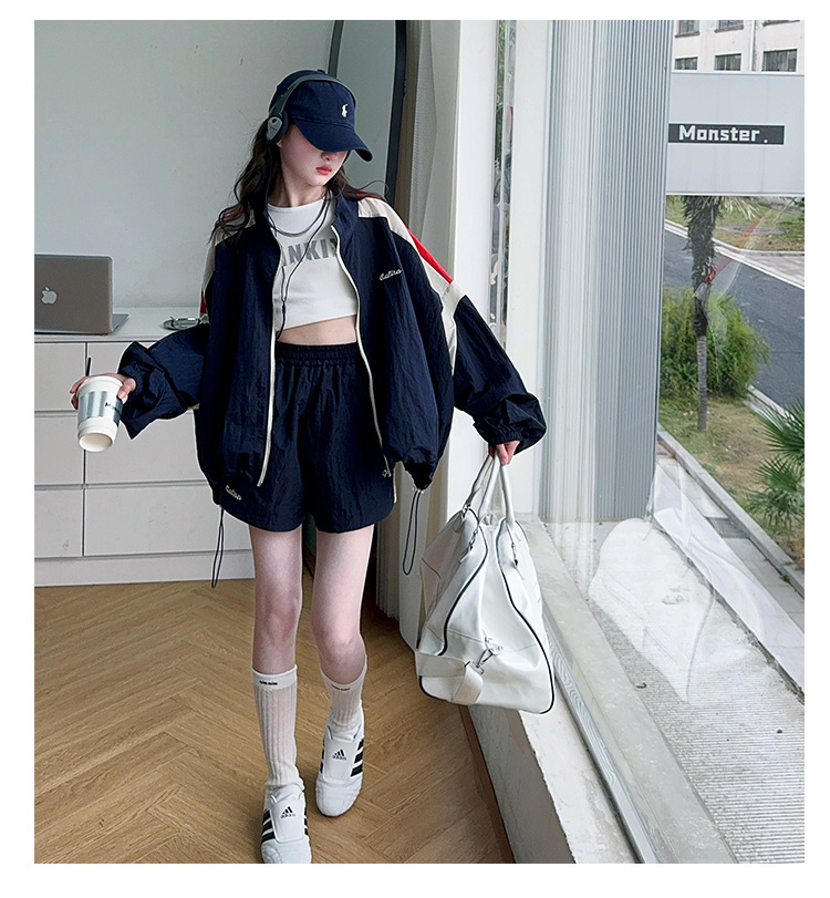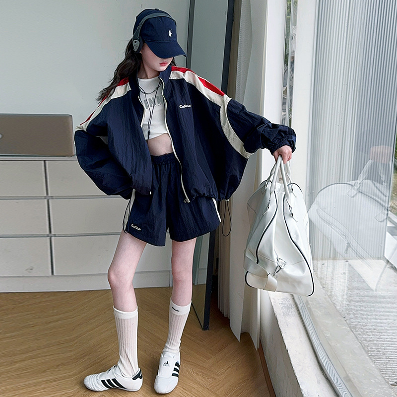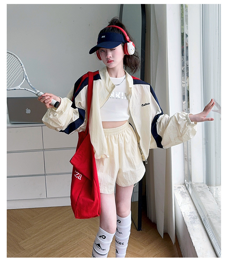 국경 간 소녀 캐주얼 스포츠 세트 2025 여름 새로운 서양식 소녀 얇은 선 스크린 반바지 세트스토어 가기