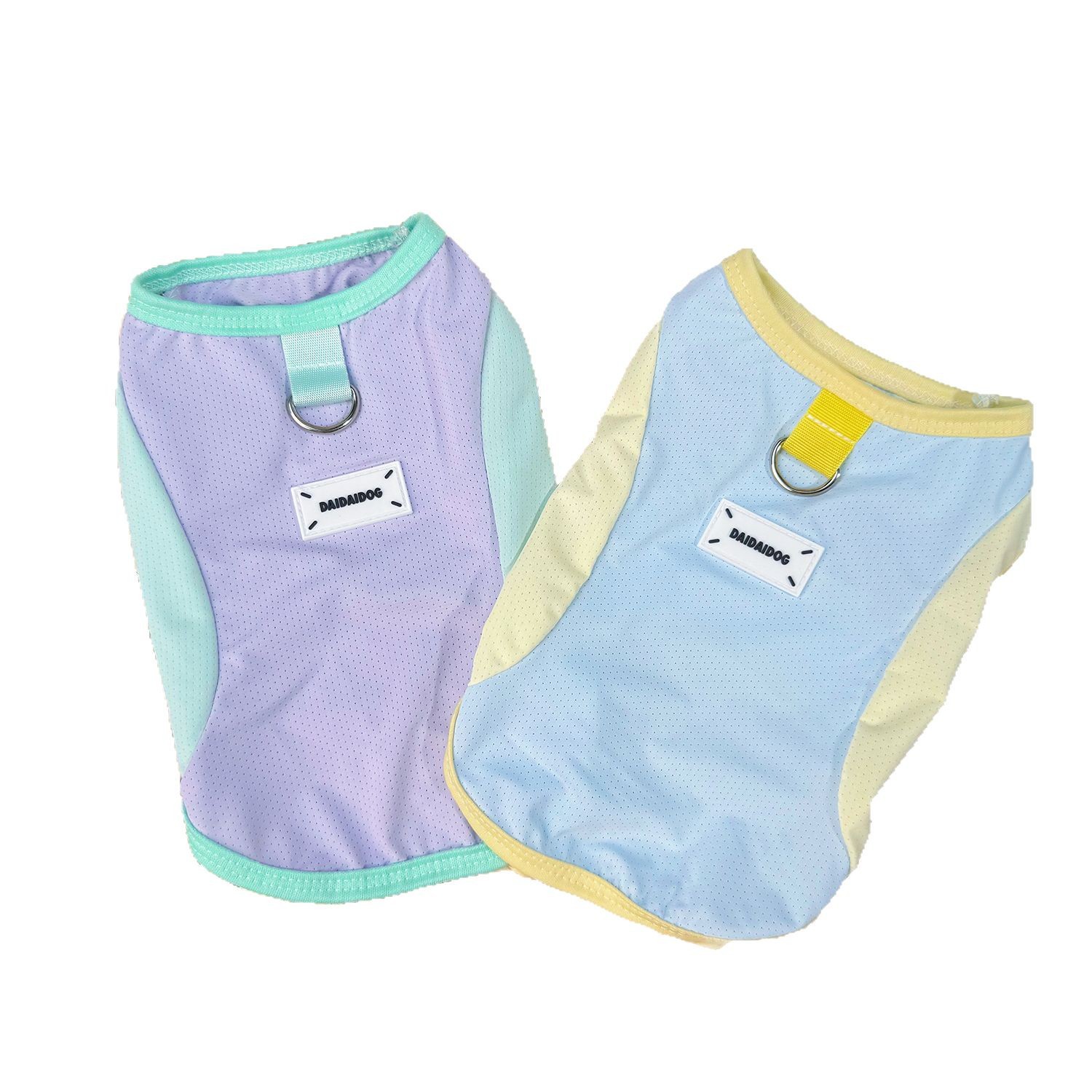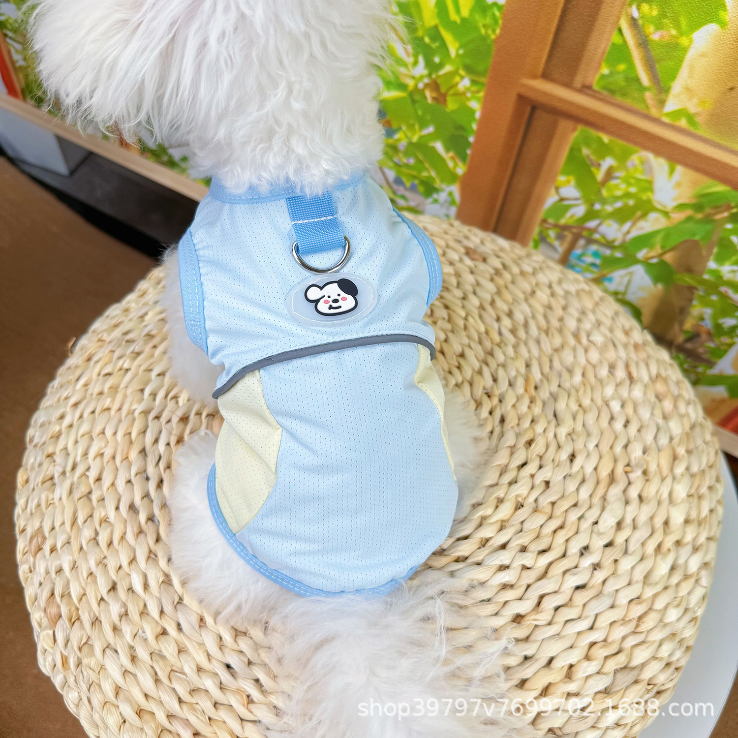 애완 동물 멋진 옷 여름 얇은 통기성 메쉬 아이스 실크 조끼 고양이 옷 머펫 고양이 쓴 곰 선 스크린 옷스토어 가기