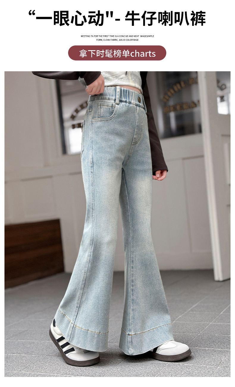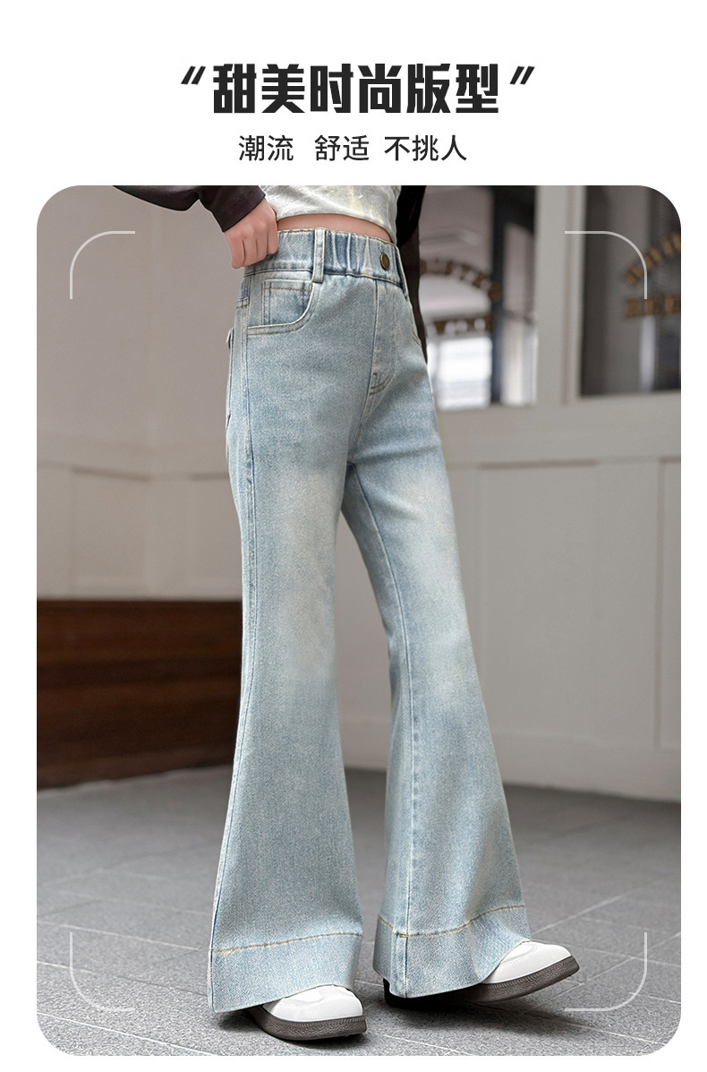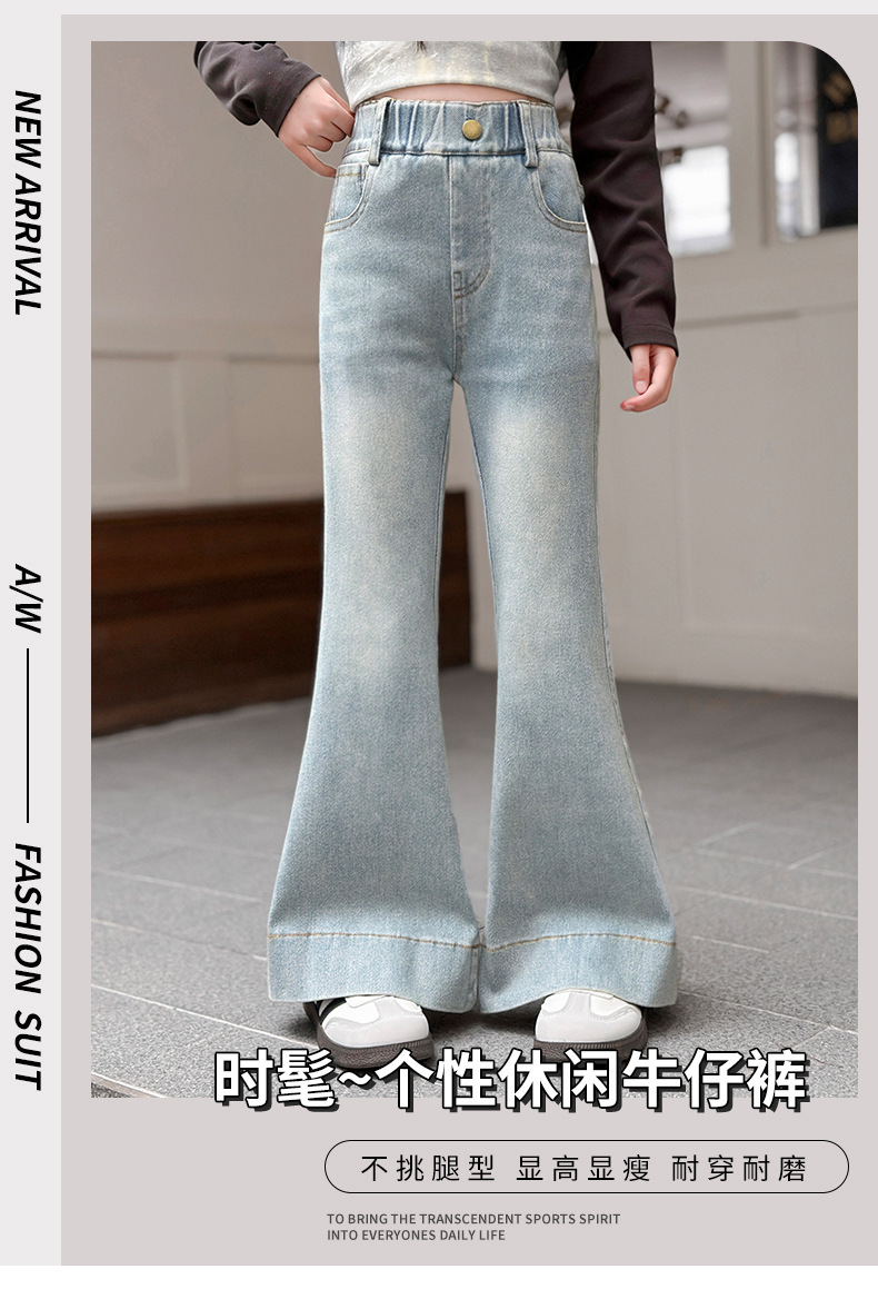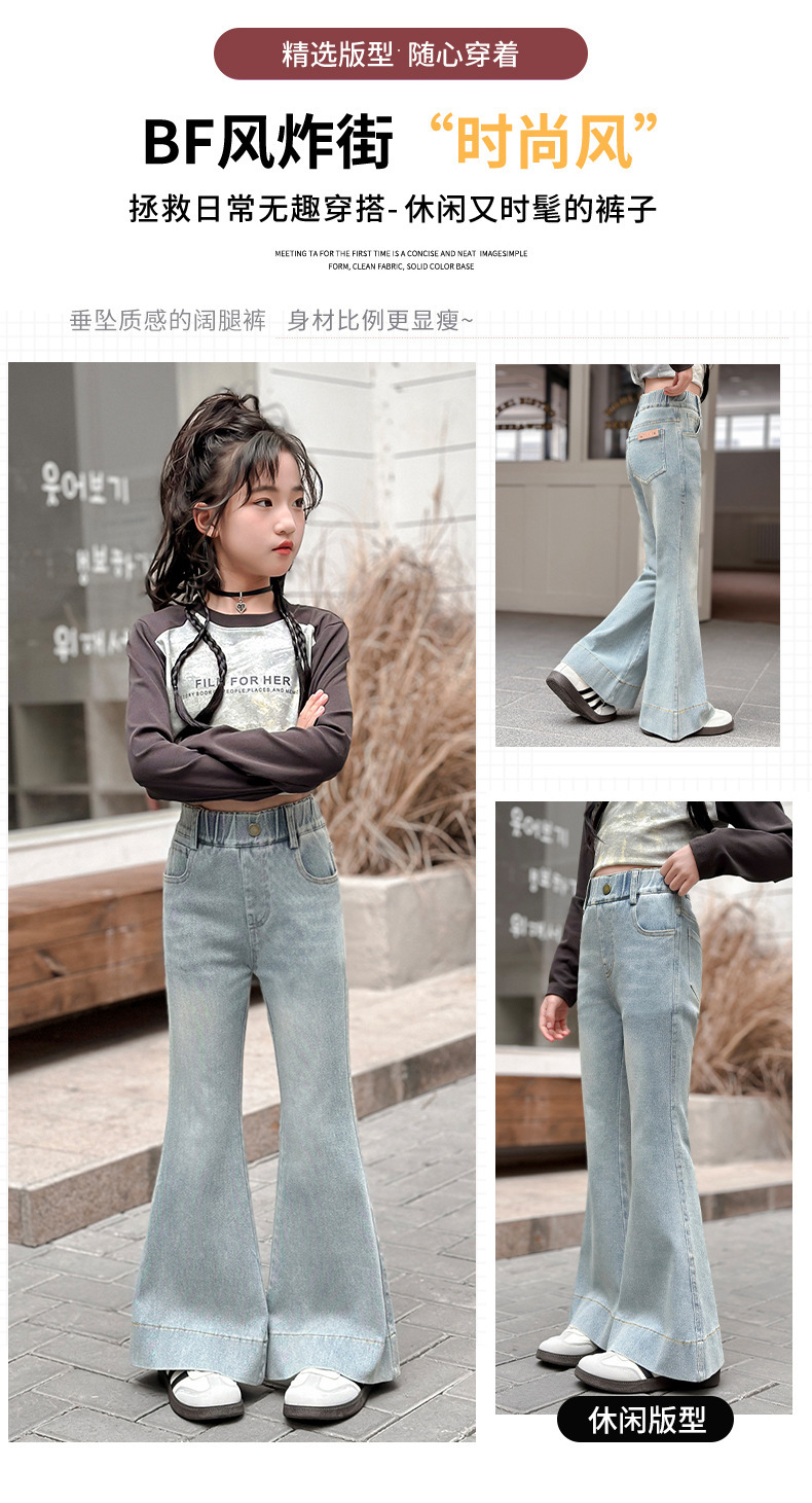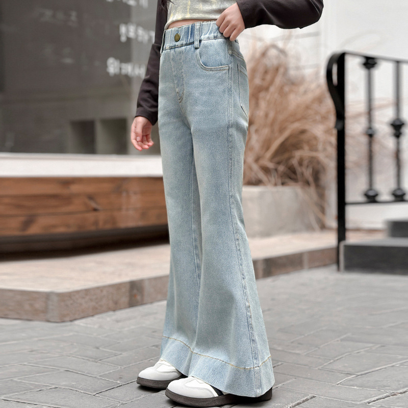 플라 트라우저 플라 트라우저 새 소녀 2025 한국식 패션 데님 소녀 슬림 적합 봄 가을스토어 가기