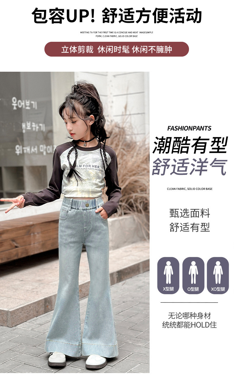 플라 트라우저 플라 트라우저 새 소녀 2025 한국식 패션 데님 소녀 슬림 적합 봄 가을