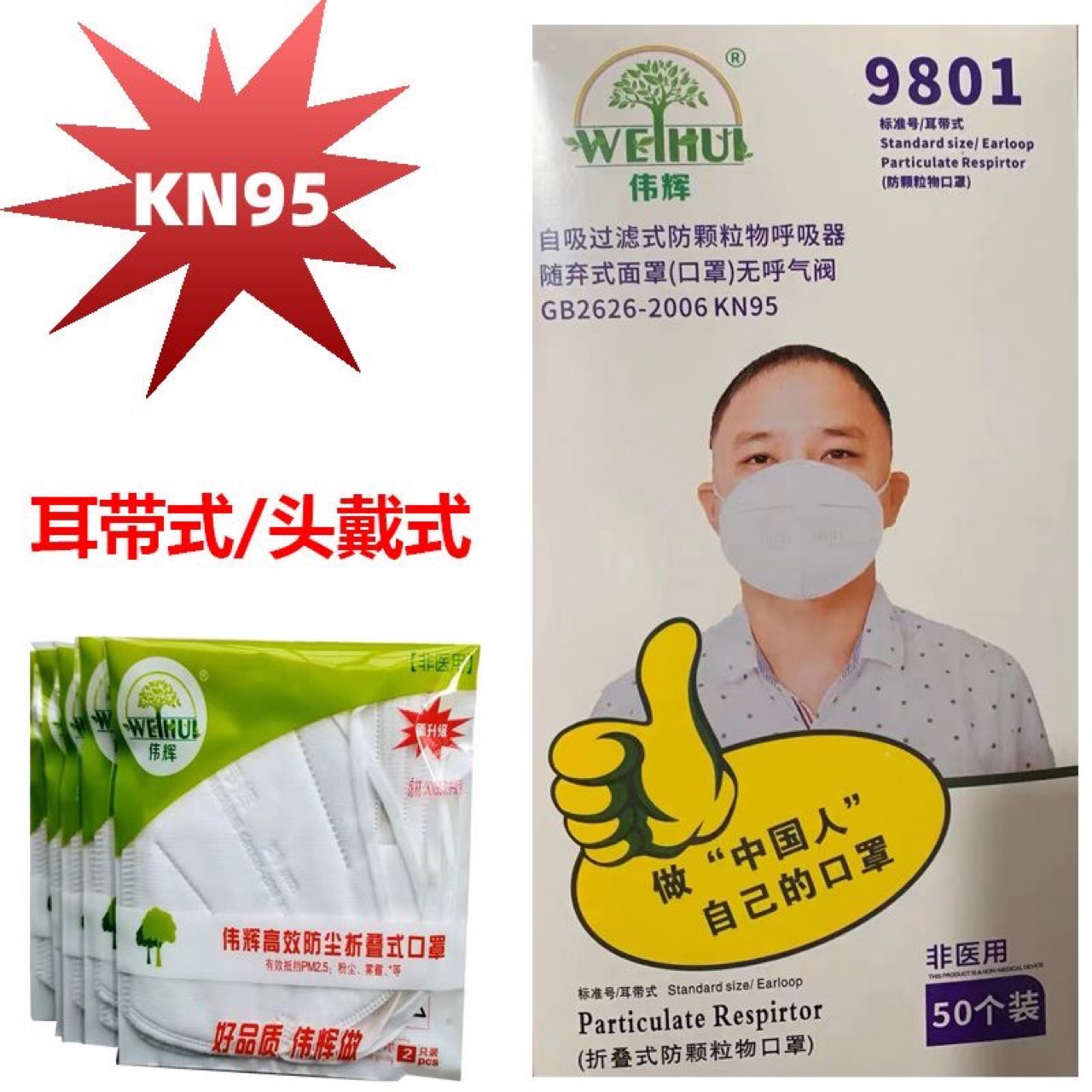 Weihui 9801 방진 마스크 KN95 스모그 방지 연마 및 장식 작업장 산업용 먼지 보호 통기성스토어 가기
