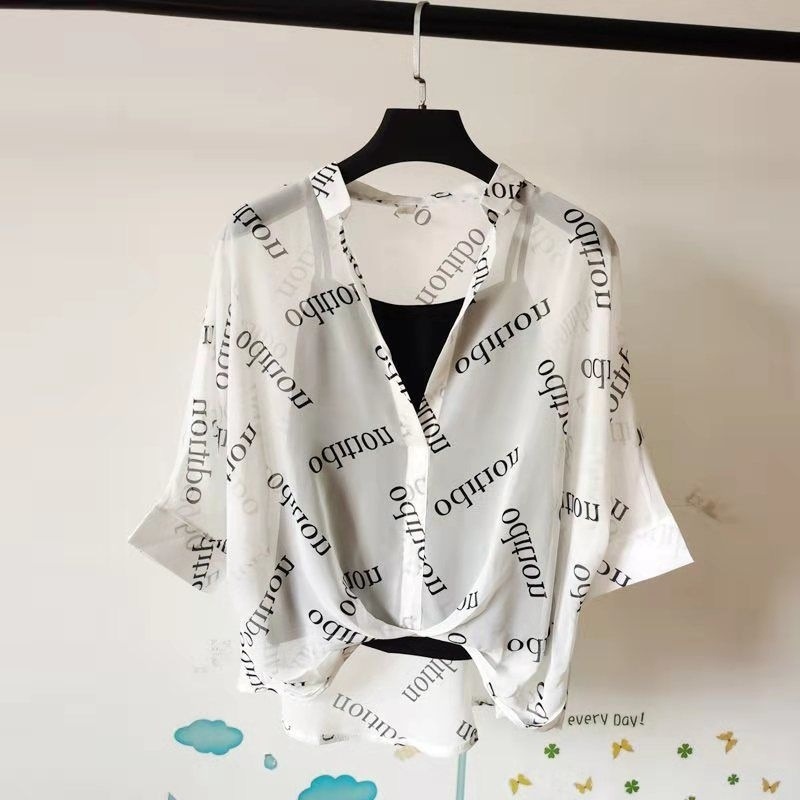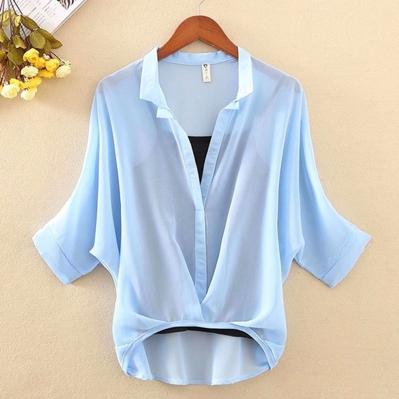 2025 새로운 여름 여성 쉬폰 셔츠 스트라이프 슬리밍 불규칙 풀오버 셔츠 투피스 배트 슬리브 쉬폰 탑스토어 가기