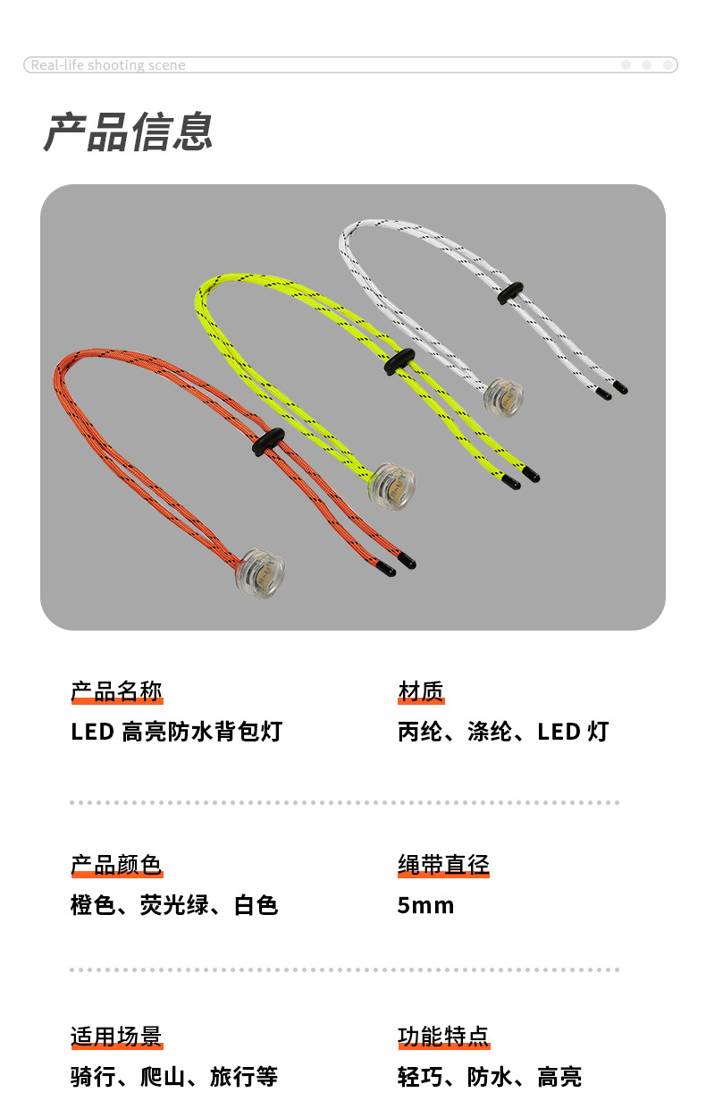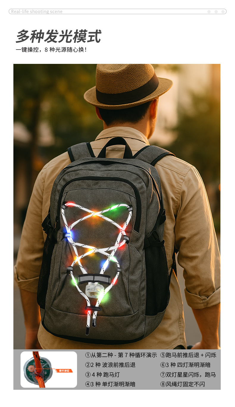 유럽과 미국의 사이클링 배낭 반사 로프 LED 야외 안전 경고 빛나는 배낭 교수형 램프 캠핑 배낭 로프 램프스토어 가기