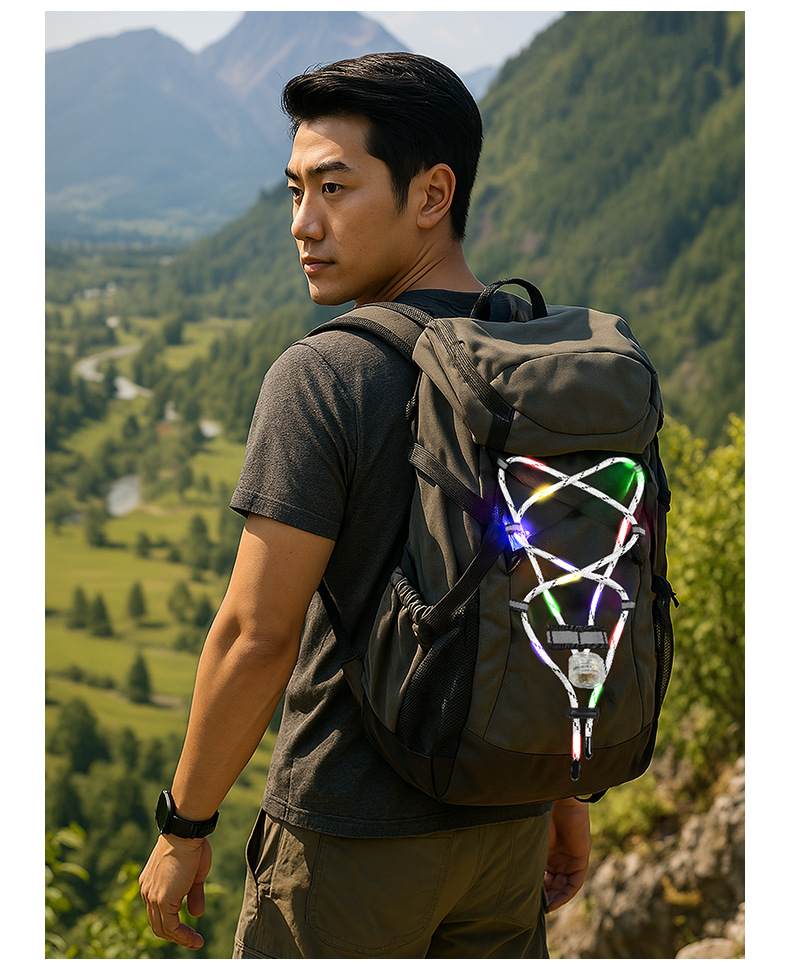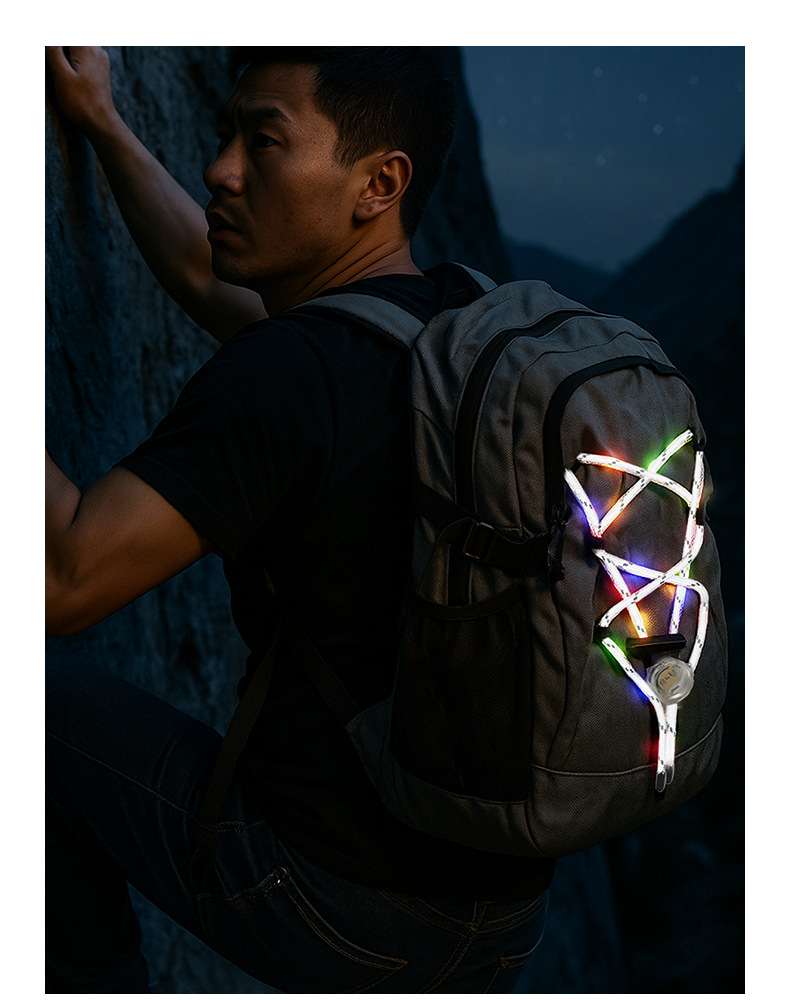 유럽과 미국의 사이클링 배낭 반사 로프 LED 야외 안전 경고 빛나는 배낭 교수형 램프 캠핑 배낭 로프 램프