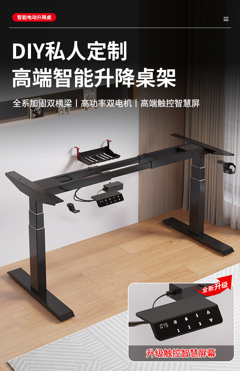 ✅지능형 전기 리프팅 테이블 다리 더블 모터 사무실 컴퓨터 책상 더블 빔 자동 텔레스코픽 리프팅 스탠드 테이블스토어 가기