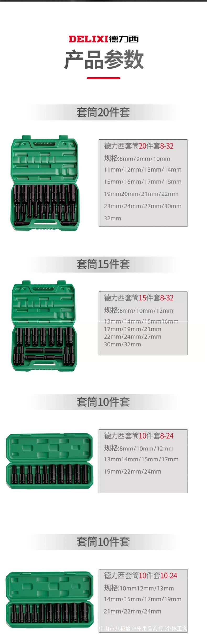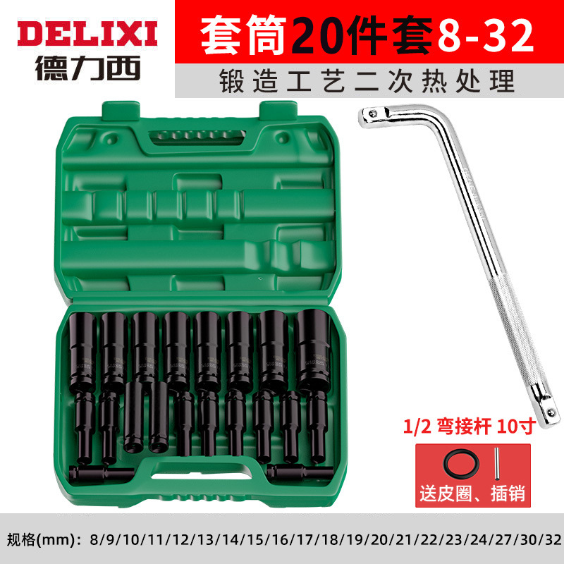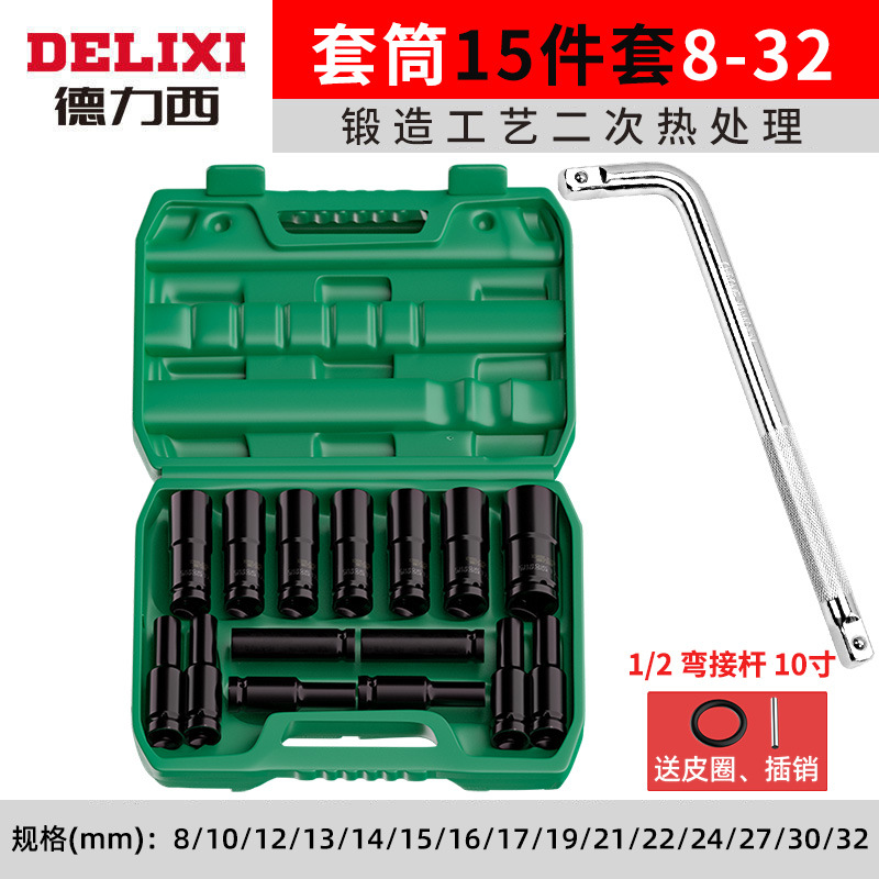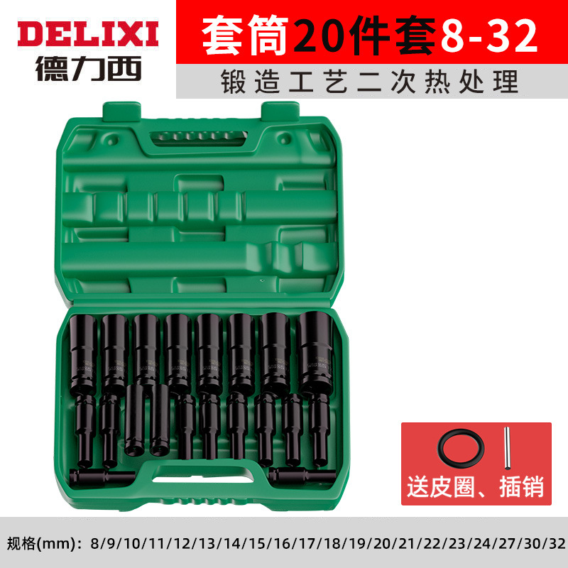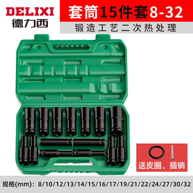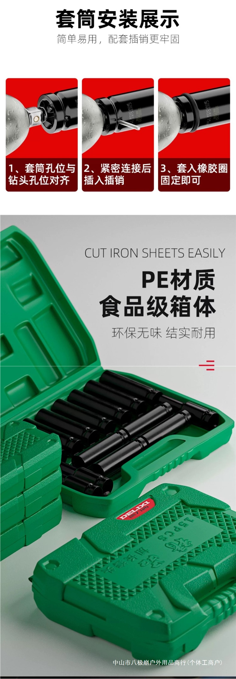 Delixi 전기 렌치 소켓 전체 세트 32 대형, 중형 및 소형 비행 내부 육각형 유연한 공기 대포 소켓 헤드 세트 8 극
