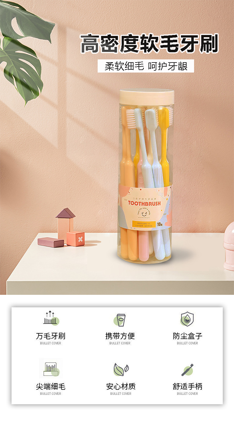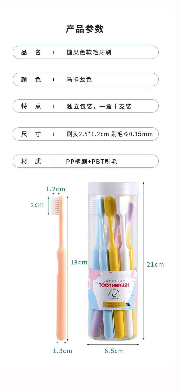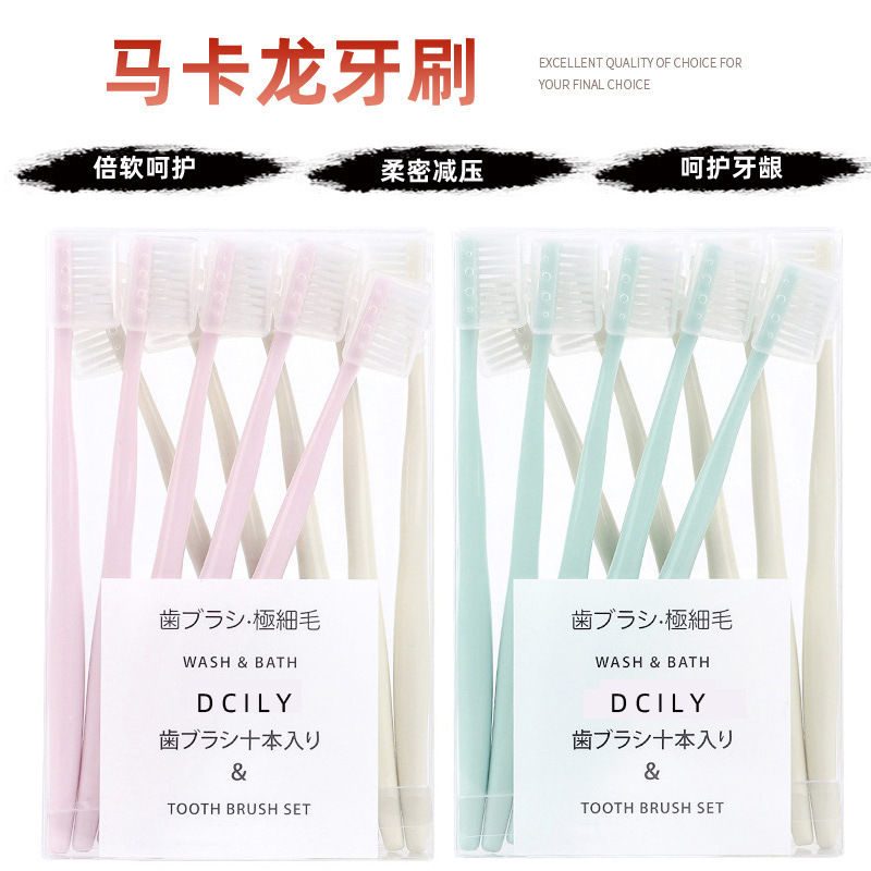 [10개 팩] 부드러운 강모 칫솔 도매 버킷 마카롱 컬러 칫솔 패밀리 팩 고급 강모 어린이 칫솔