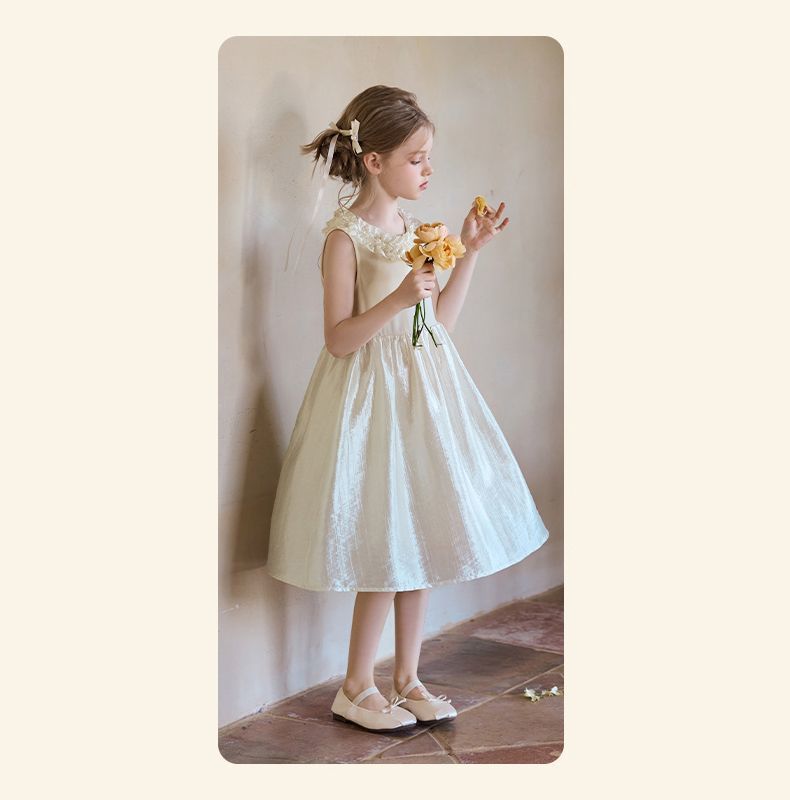 소녀 새로운 2025 원피스 여름 새로운 귀 가장자리 광택 공주 원피스 어린이 멋진 조끼 원피스스토어 가기