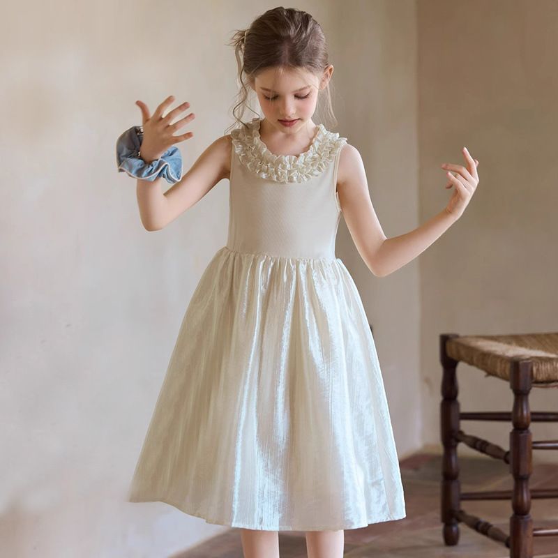 소녀 새로운 2025 원피스 여름 새로운 귀 가장자리 광택 공주 원피스 어린이 멋진 조끼 원피스