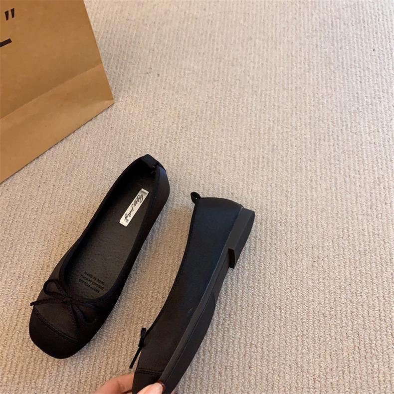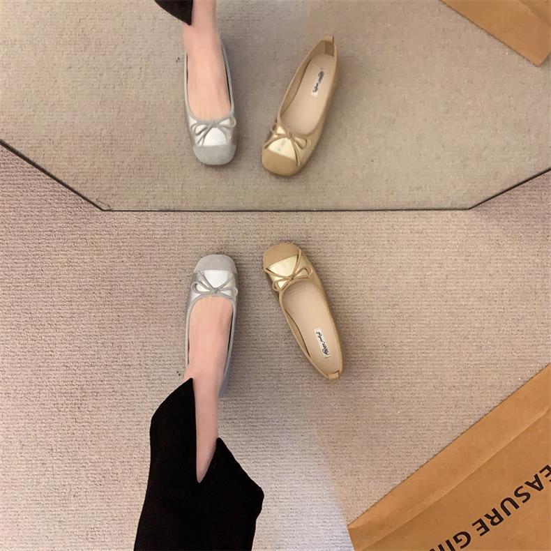 여성용 프렌치 슈즈 2025 신형 보우 리본 펌프스 슬립온 살구 이브닝 슈즈 여성용스토어 가기