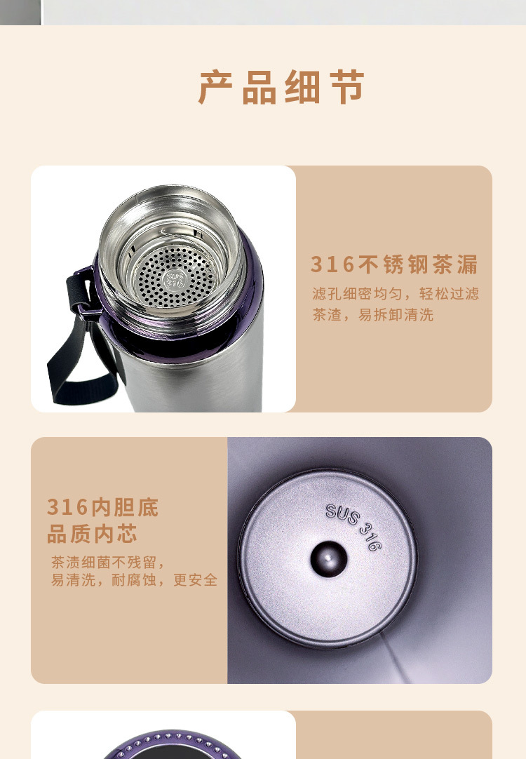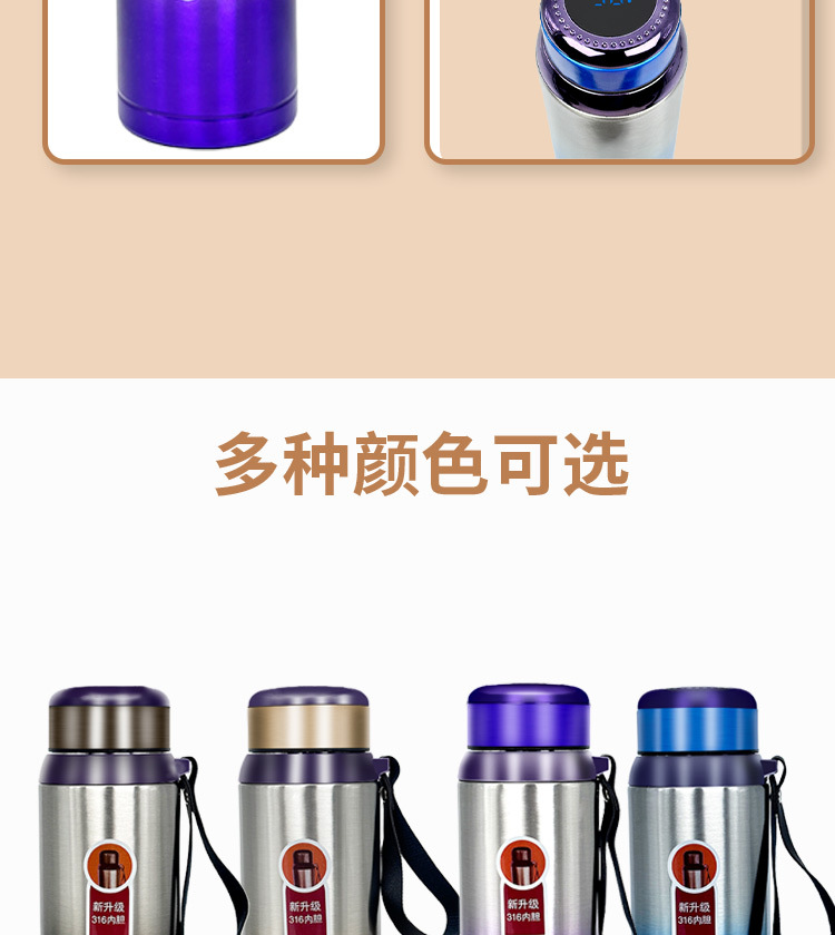 새로운 야외 스포츠 대용량 스포츠 물병 휴대용 등산 여행 주전자 316 스테인레스 스틸 절연 컵 도매