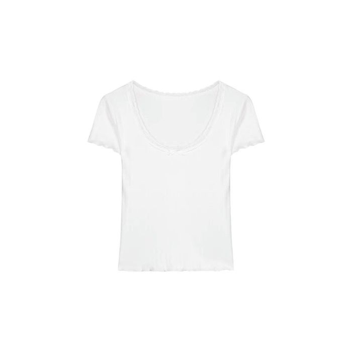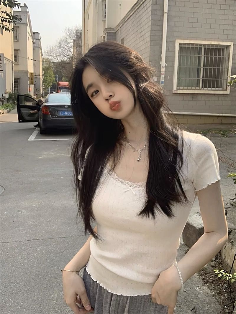 화이트 퓨어 욕망 스위트 레이스 슬림 핏 슬리밍베이스 여성의 여름 어깨 짧은 내부 반팔 티셔츠 탑인