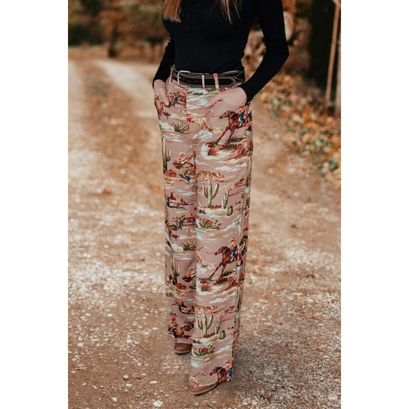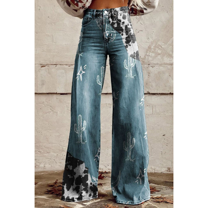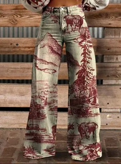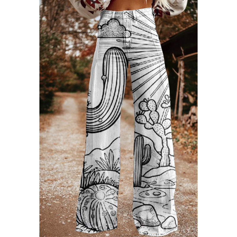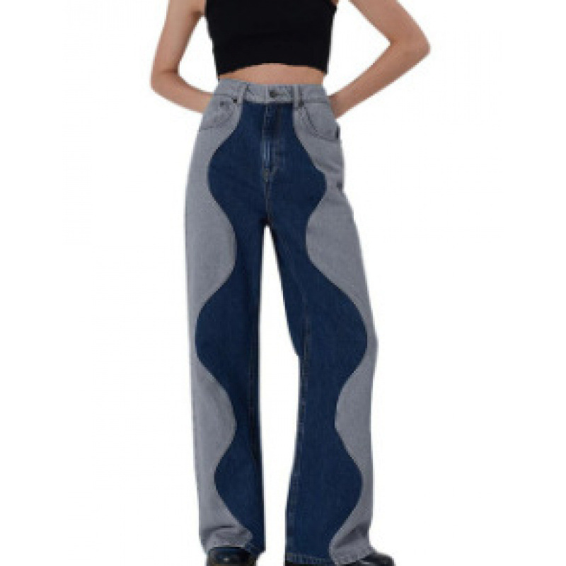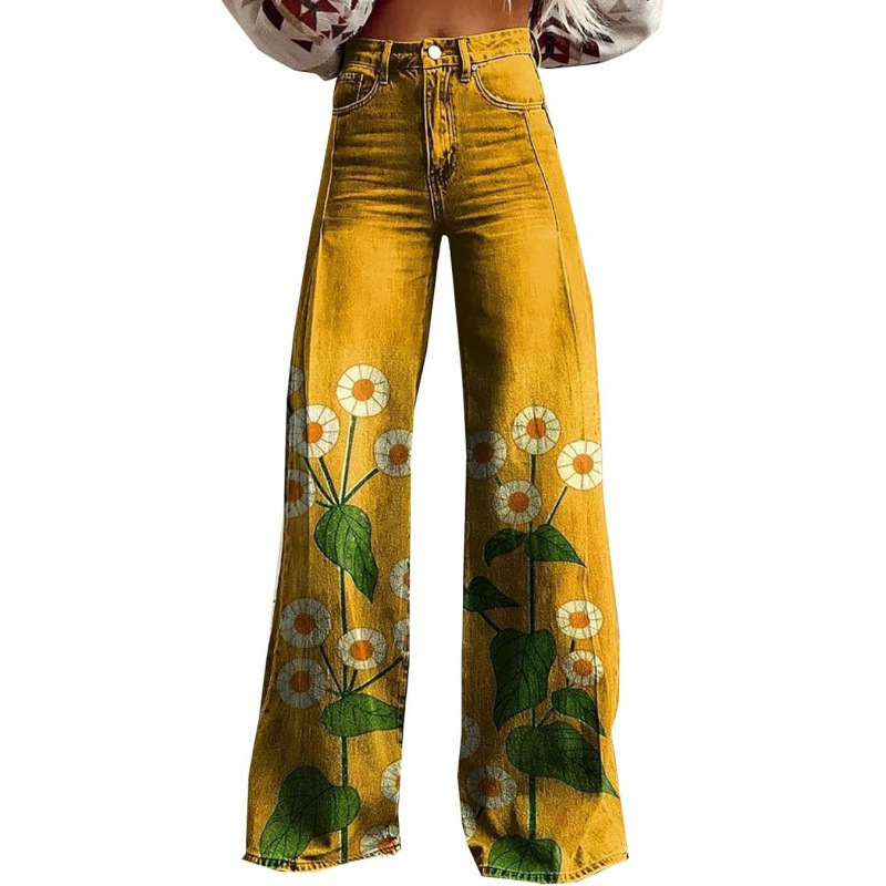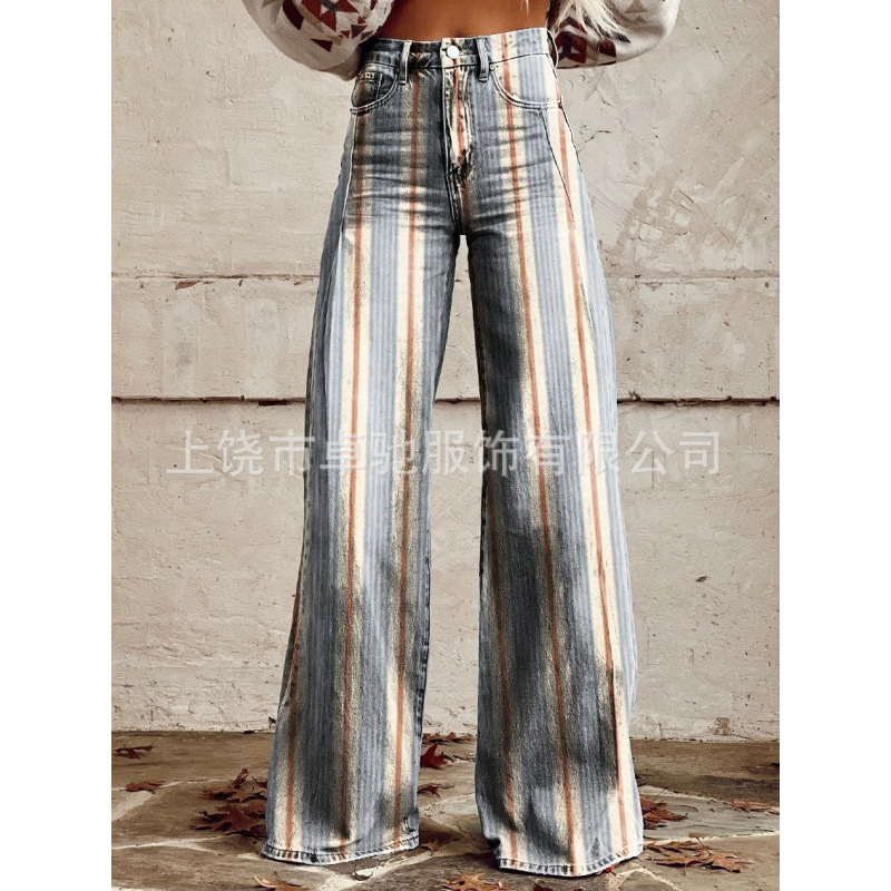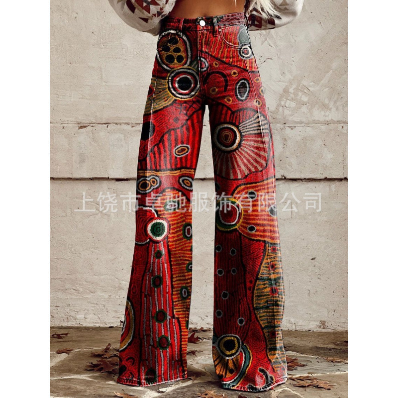 2025 독립 역 Xiyin 유럽 및 미국 대외 무역 플러스 사이즈 여성 캐주얼 바지 인쇄 모방 청바지 넓은 다리 3D 패션 여성 바지