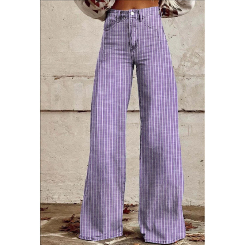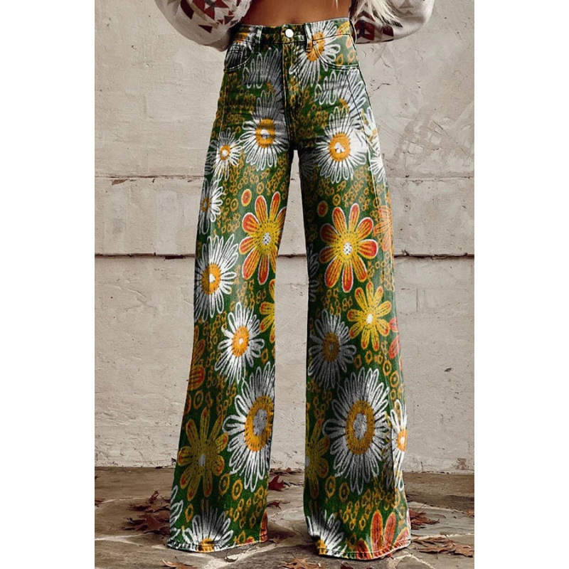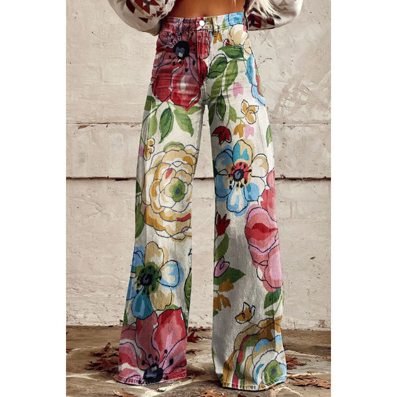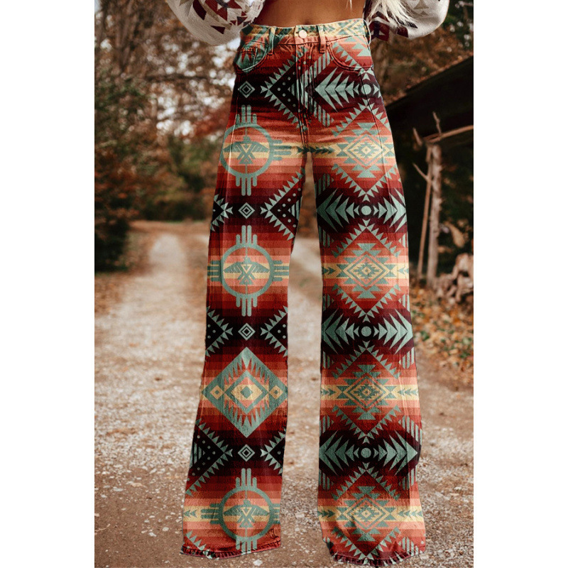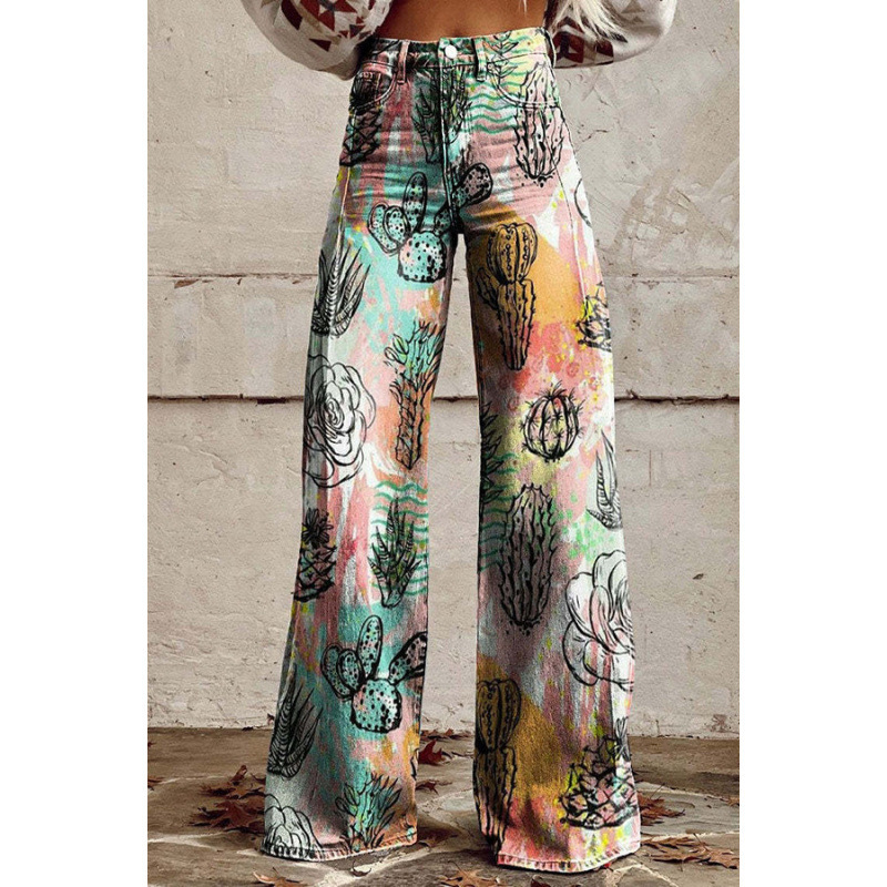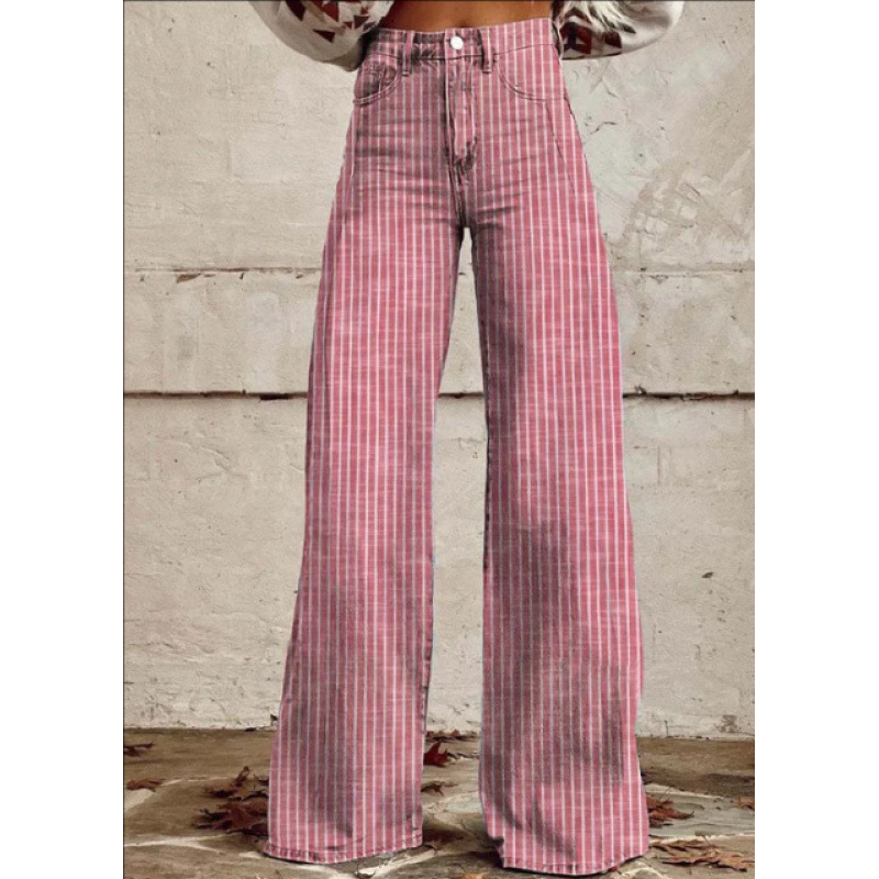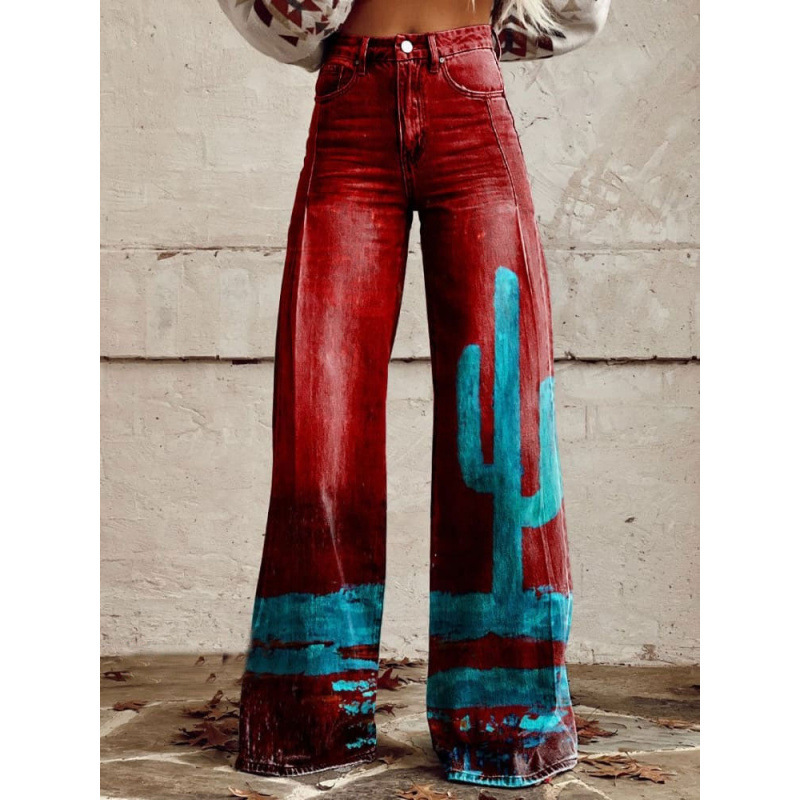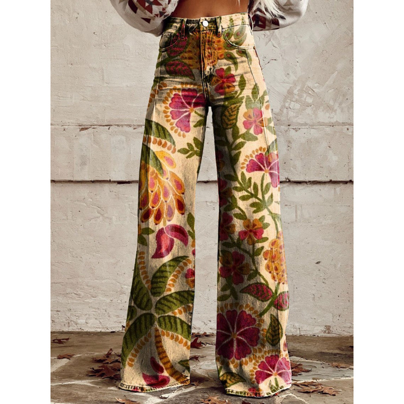 2025 독립 역 Xiyin 유럽 및 미국 대외 무역 플러스 사이즈 여성 캐주얼 바지 인쇄 모방 청바지 넓은 다리 3D 패션 여성 바지