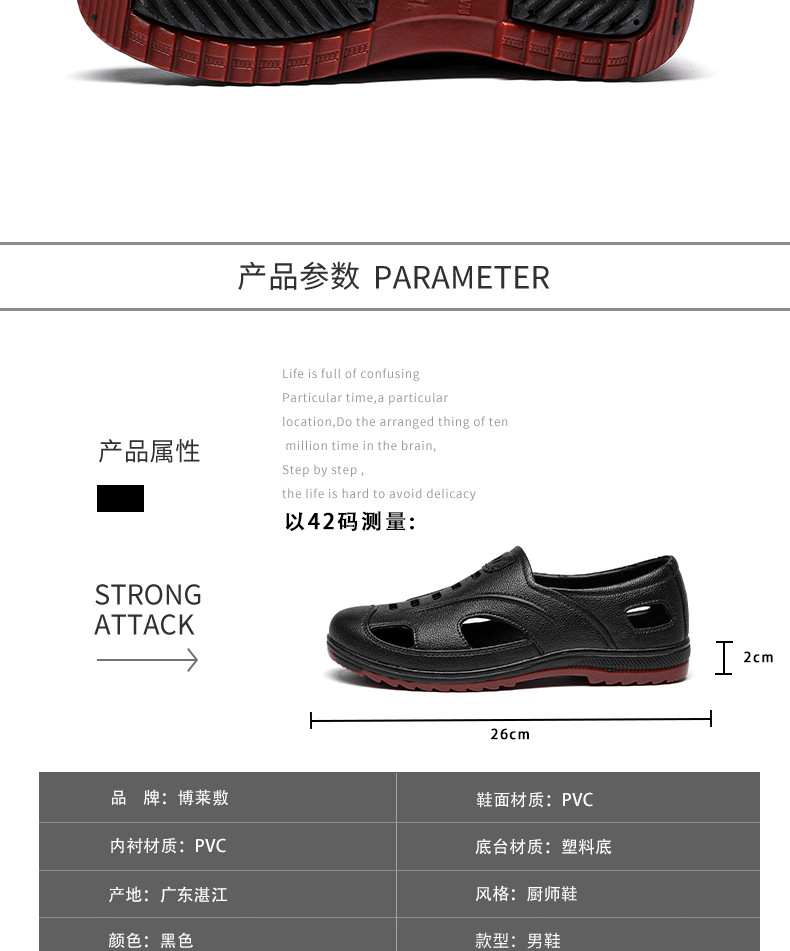 남성용 내마모성 힘줄 밑창 장화, 로우탑 숏장화, 미끄럼 방지, 냄새 방지 주방 방수화, 세차 및 낚시 고무신