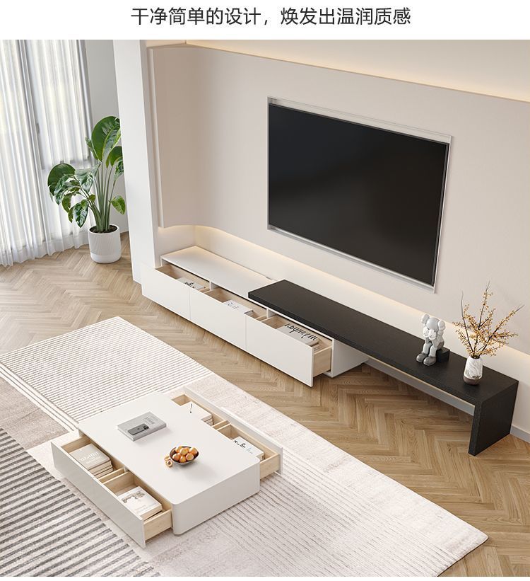 단단한 나무 망원경 TV 내각 현대 간단한 북유럽 작은 아파트 거실 화이트 층 TV 내각 조합 바닥 캐비닛