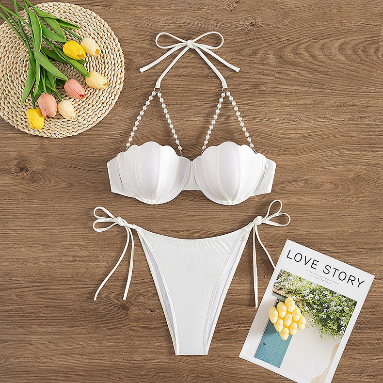 2025 새로운 국경 목 흰색 분할 수영복 아마존 스틸 트랩, 섹시한 비키니 유럽과 미국 수영복 수집