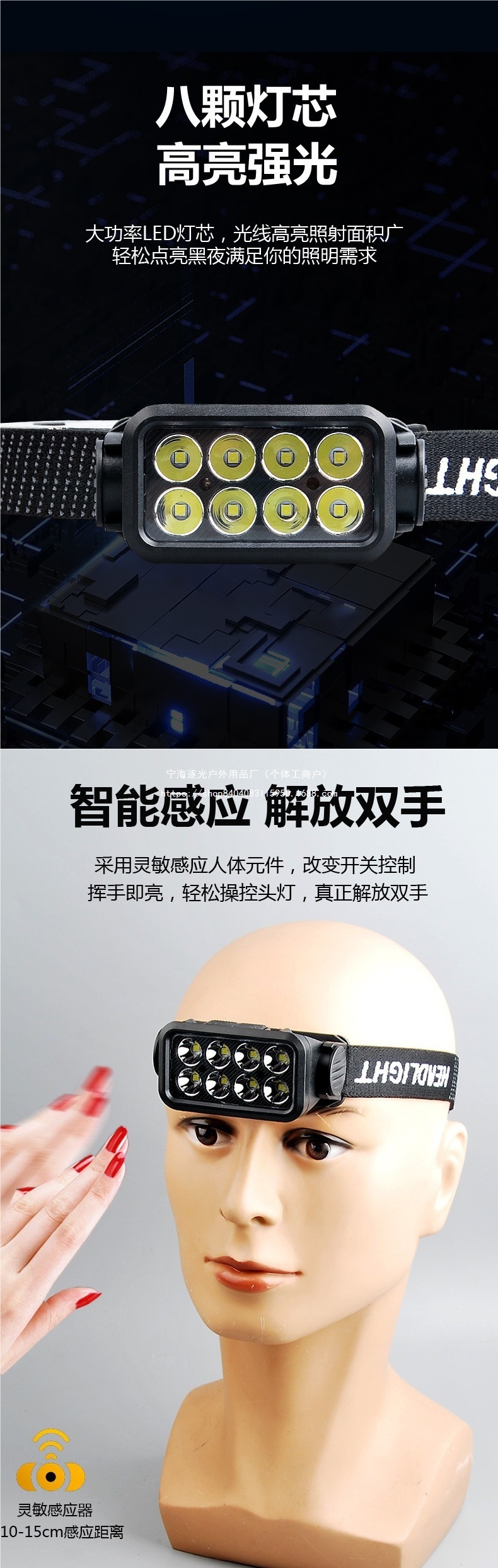 소형 수리 도구 작업등 스마트 롱 헤드램프 광부등 야간 러닝 충전식 센서 야외용 스마트 센서