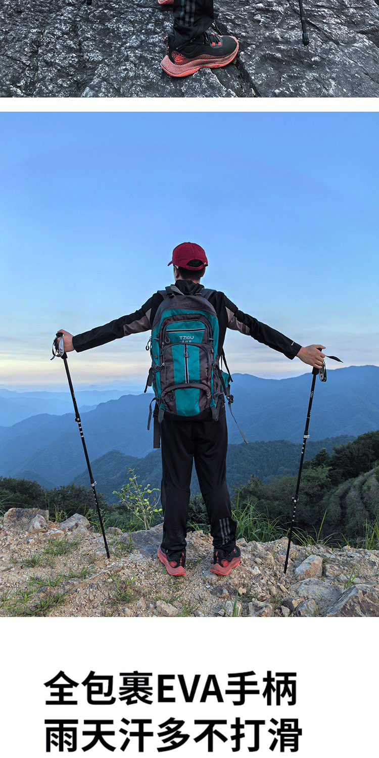 탄소 섬유 등반 스틱 3 섹션 개폐식 등반 하이킹 성인 및 어린이 야외 스틱