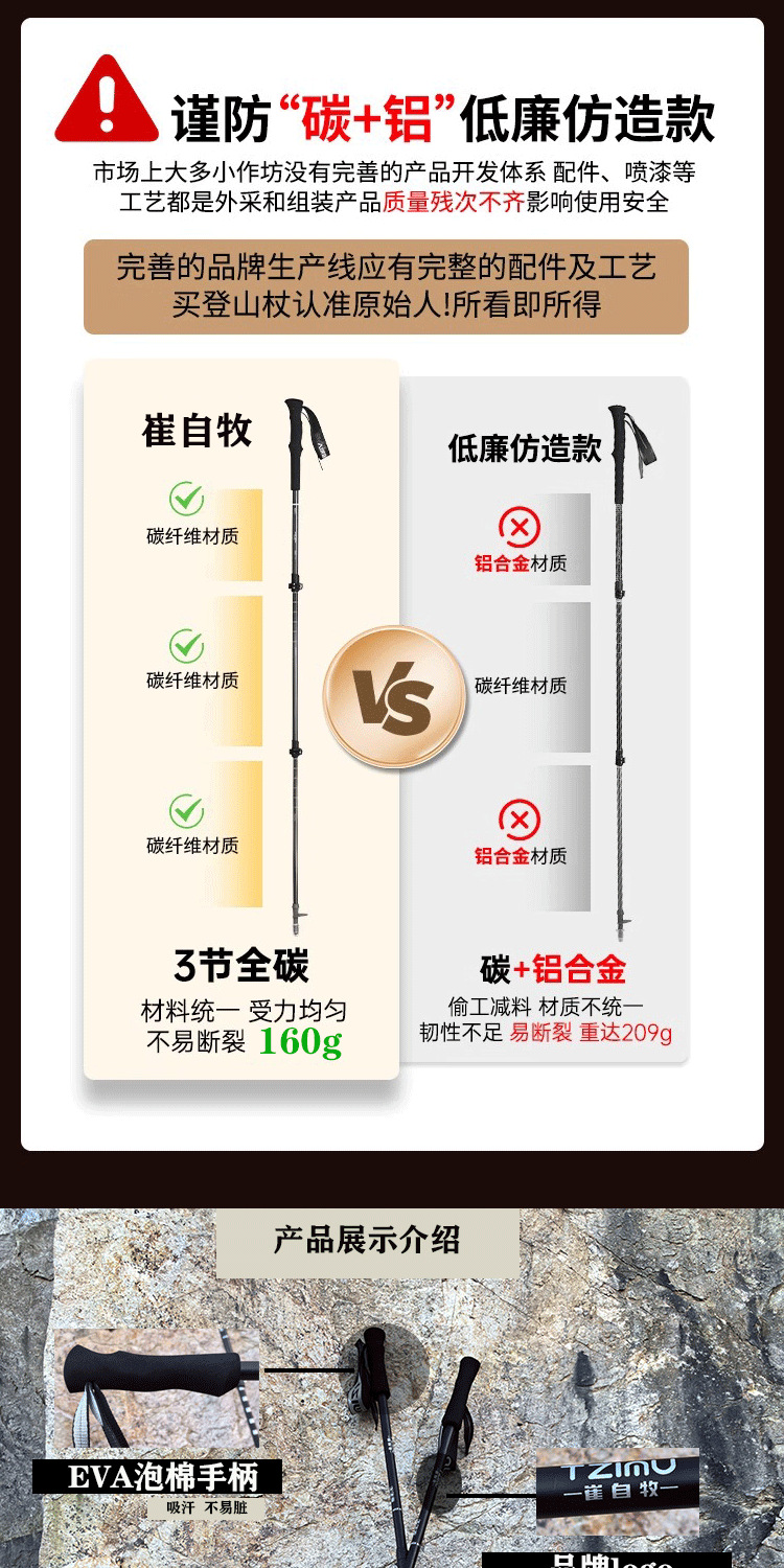 탄소 섬유 등반 스틱 3 섹션 개폐식 등반 하이킹 성인 및 어린이 야외 스틱스토어 가기