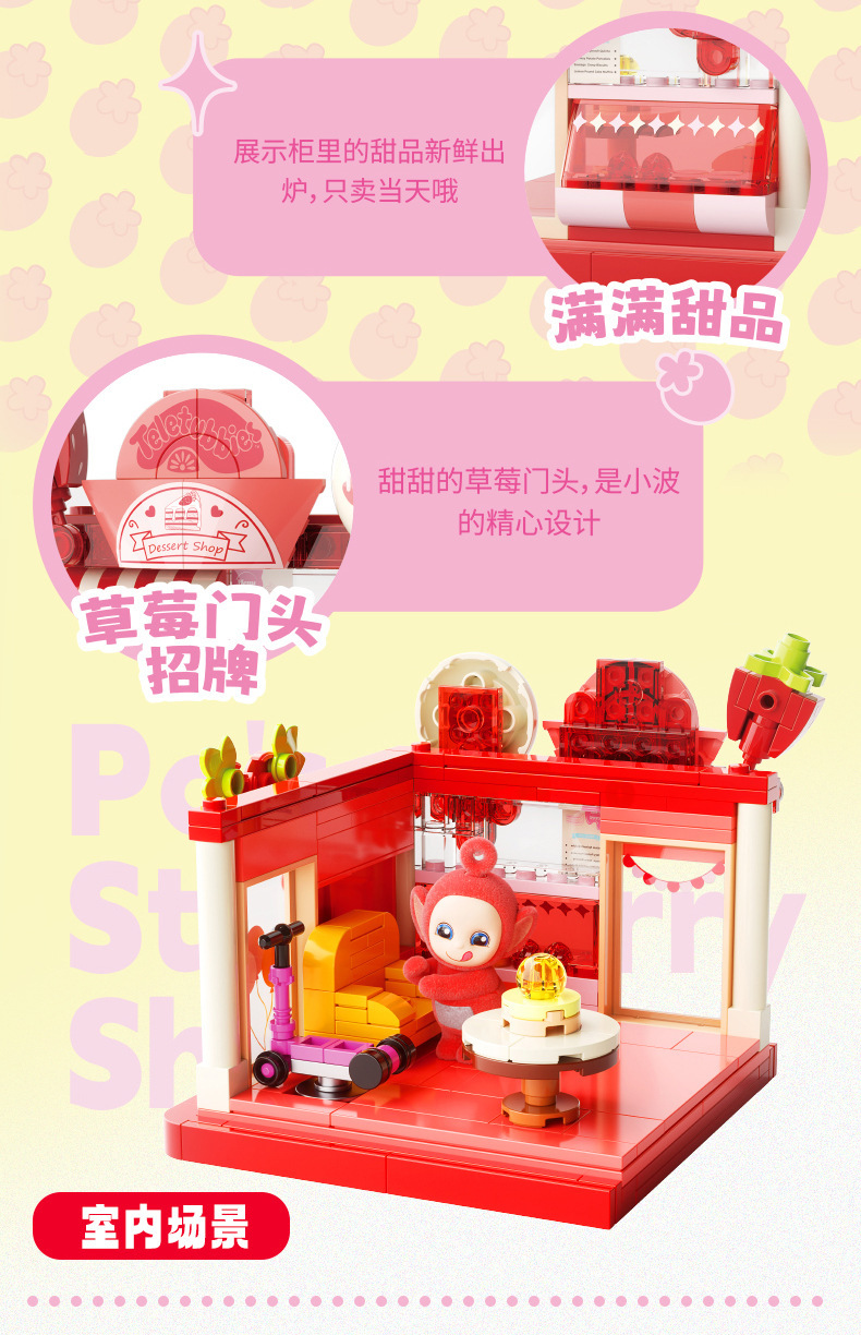 Jiaqi HK501-8 Teletubbies 과일 가게 관람차 장면 장식품 조립 빌딩 블록 Little Red Book 선물스토어 가기