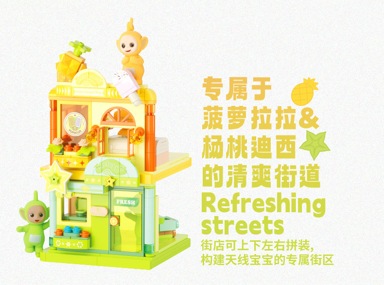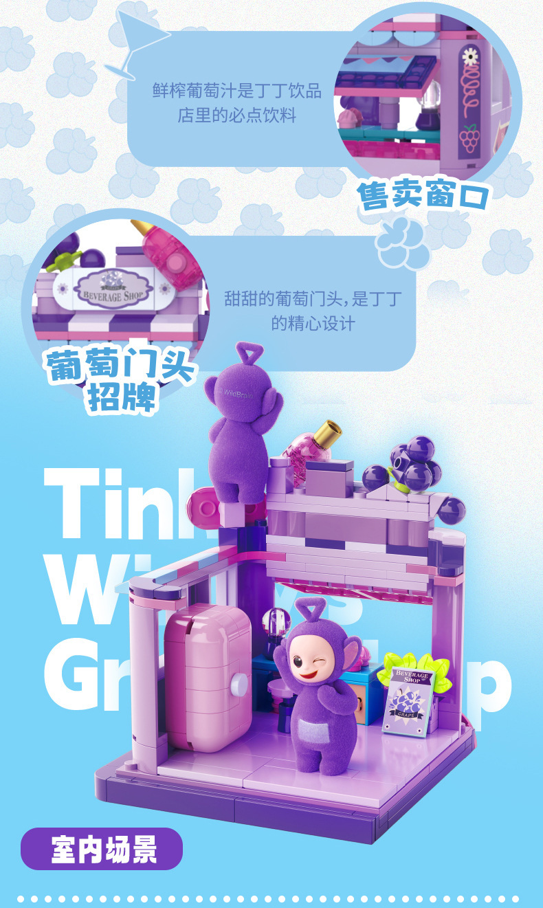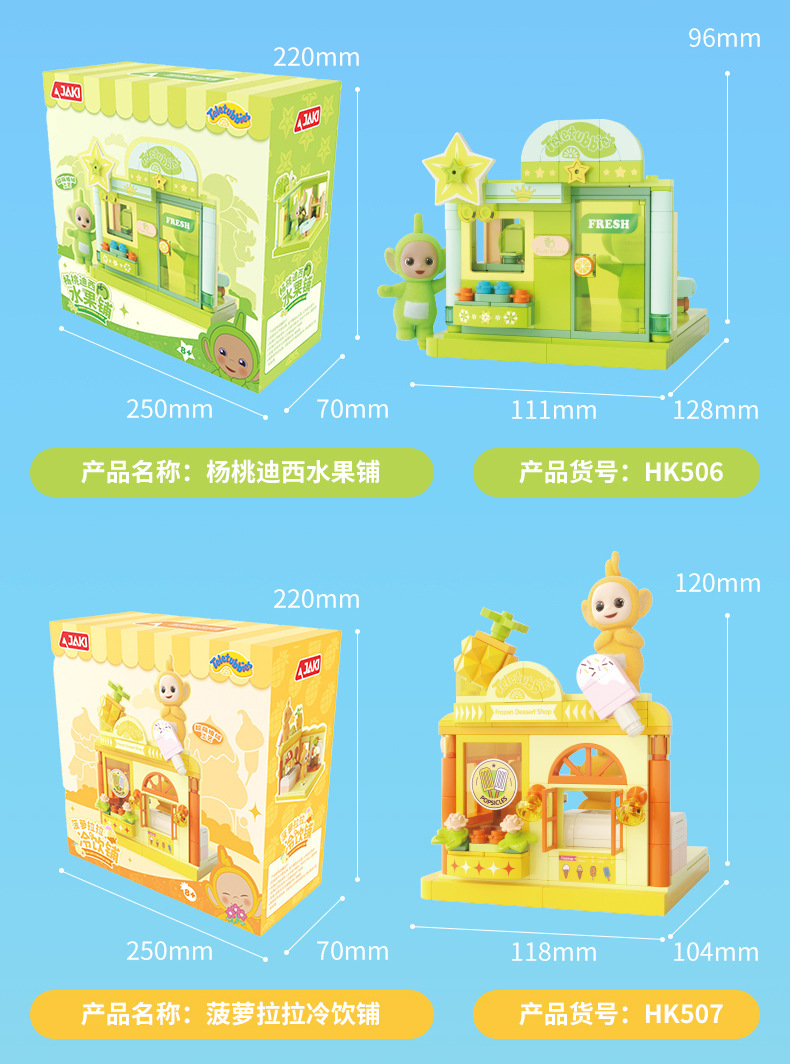 Jiaqi HK501-8 Teletubbies 과일 가게 관람차 장면 장식품 조립 빌딩 블록 Little Red Book 선물