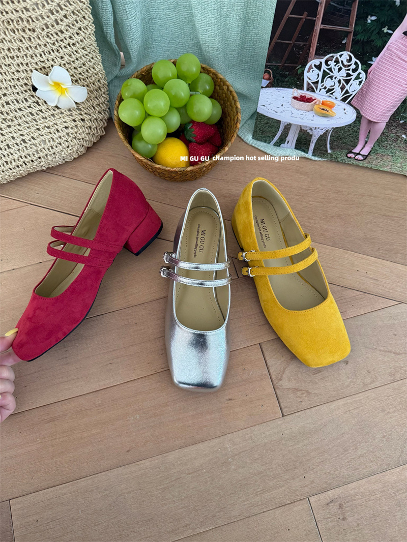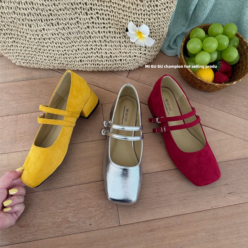 여성을위한 프렌치 이브닝 스타일 신발 2025 봄 여름 새로운 스타일 로우 힐 요정 통근 스퀘어 토 펌프 메리 제인 신발스토어 가기