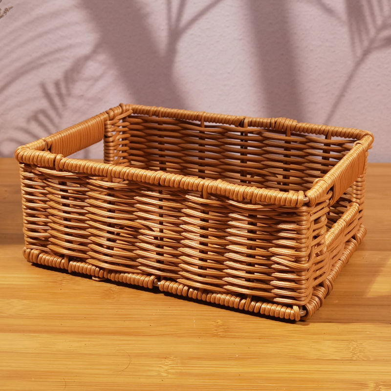 귀가 달린 플라스틱 등나무 직선형 데스크탑 보관 바구니, 문구류 마스크 보관 상자, 철제 프레임, 광시에서 정밀하게 짜여진 제품
