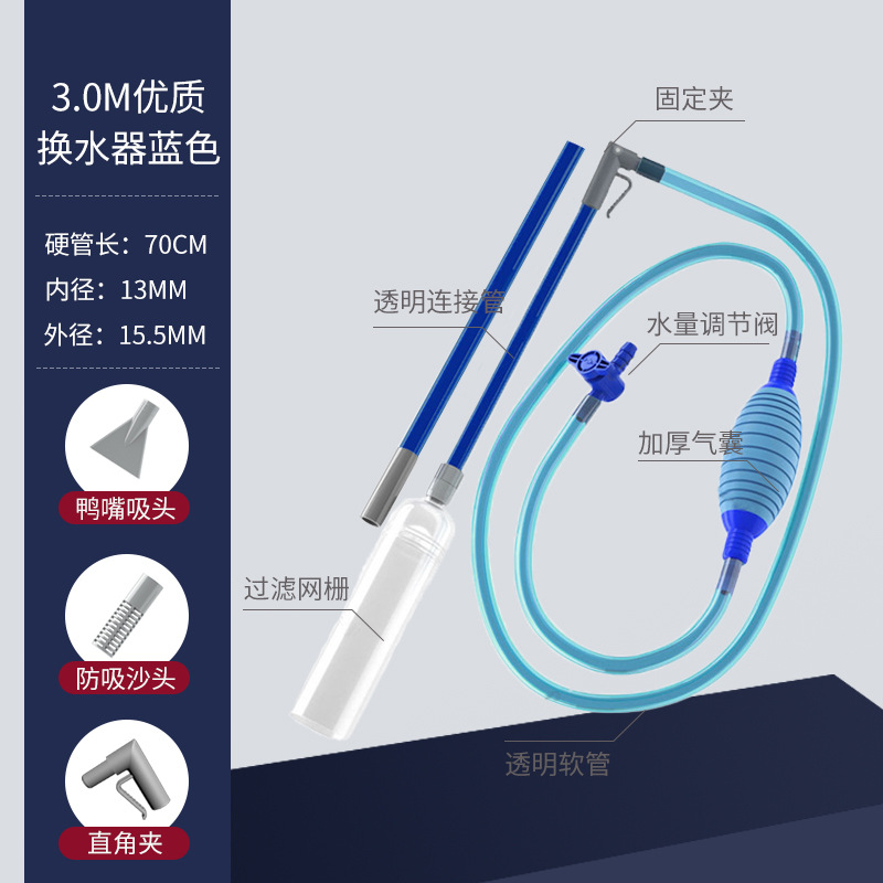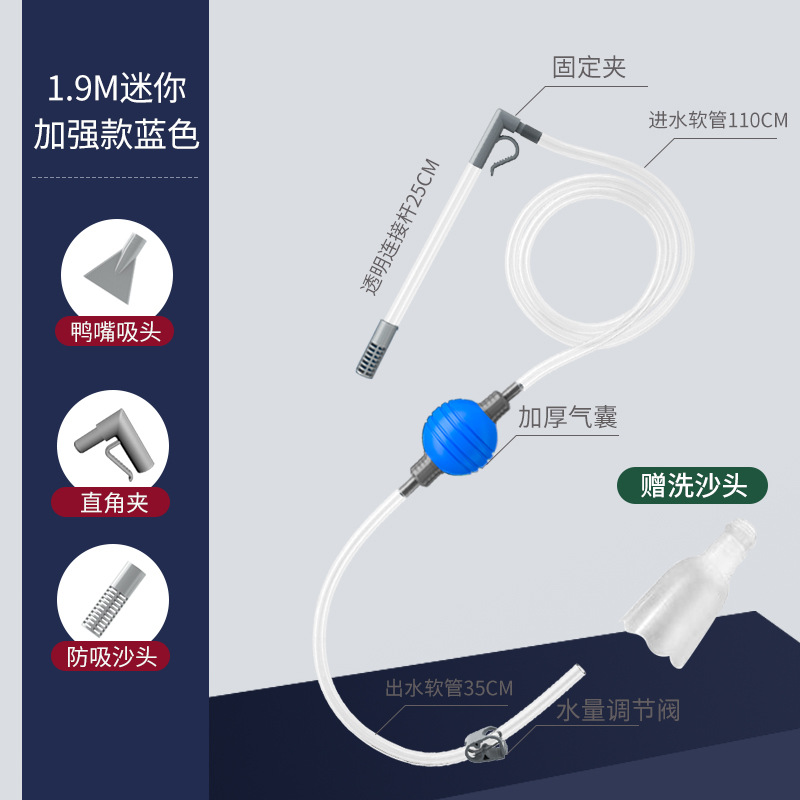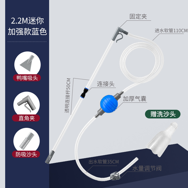 • [밸브가 있는 섬세한 소형 탱크용 특별 제품] 2.2m 파란색 공 + 모래 세척 헤드 및 애완동물