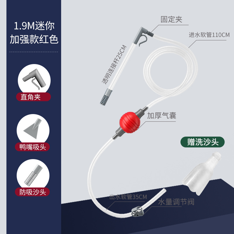 • [밸브가 있는 섬세한 소형 탱크용] 1.9m 빨간 공 + 모래 세척 헤드 도약 애완 동물