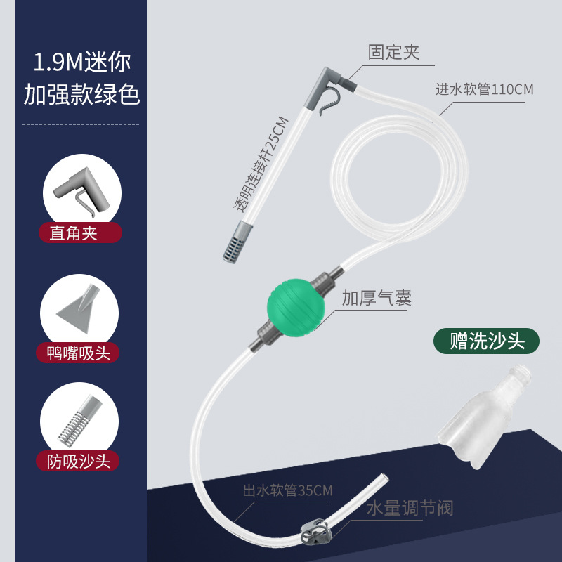 • [밸브가 있는 섬세한 소형 탱크용] 1.9m 녹색 공 + 모래 세척 헤드 점프 애완 동물