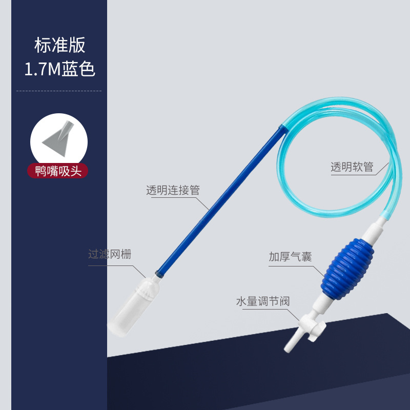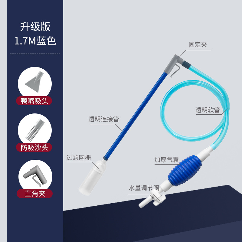 • [밸브가 포함된 고품질 모델 1.7m ] 파란색 + 직각 클립 + 소형 흡입 헤드 + 애완동물용 덕빌 헤드