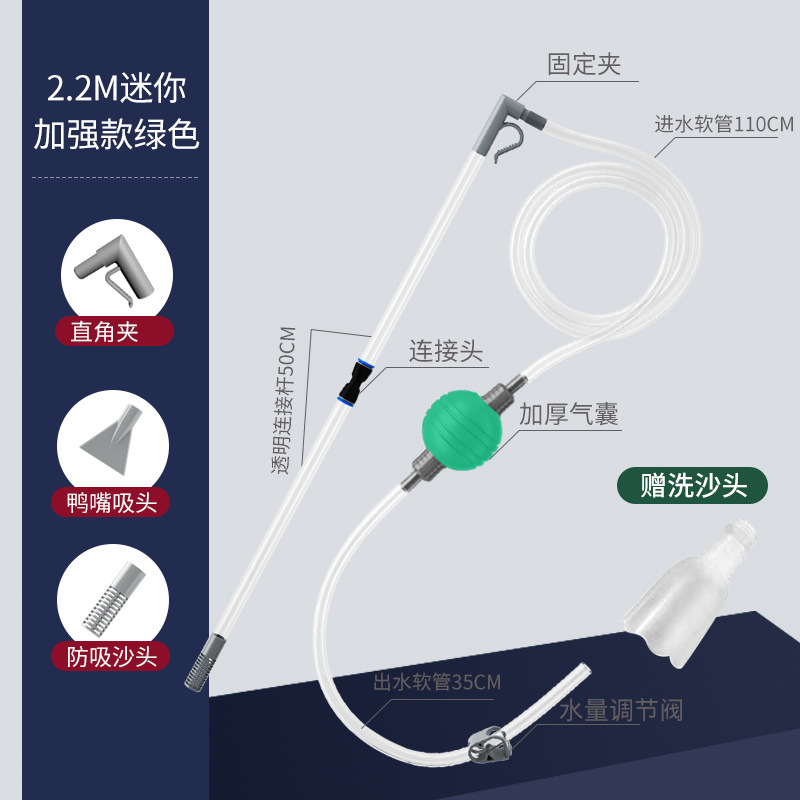 • [밸브가 있는 섬세한 소형 탱크용] 2.2m 녹색 공 + 모래 세척 헤드 점프 애완 동물