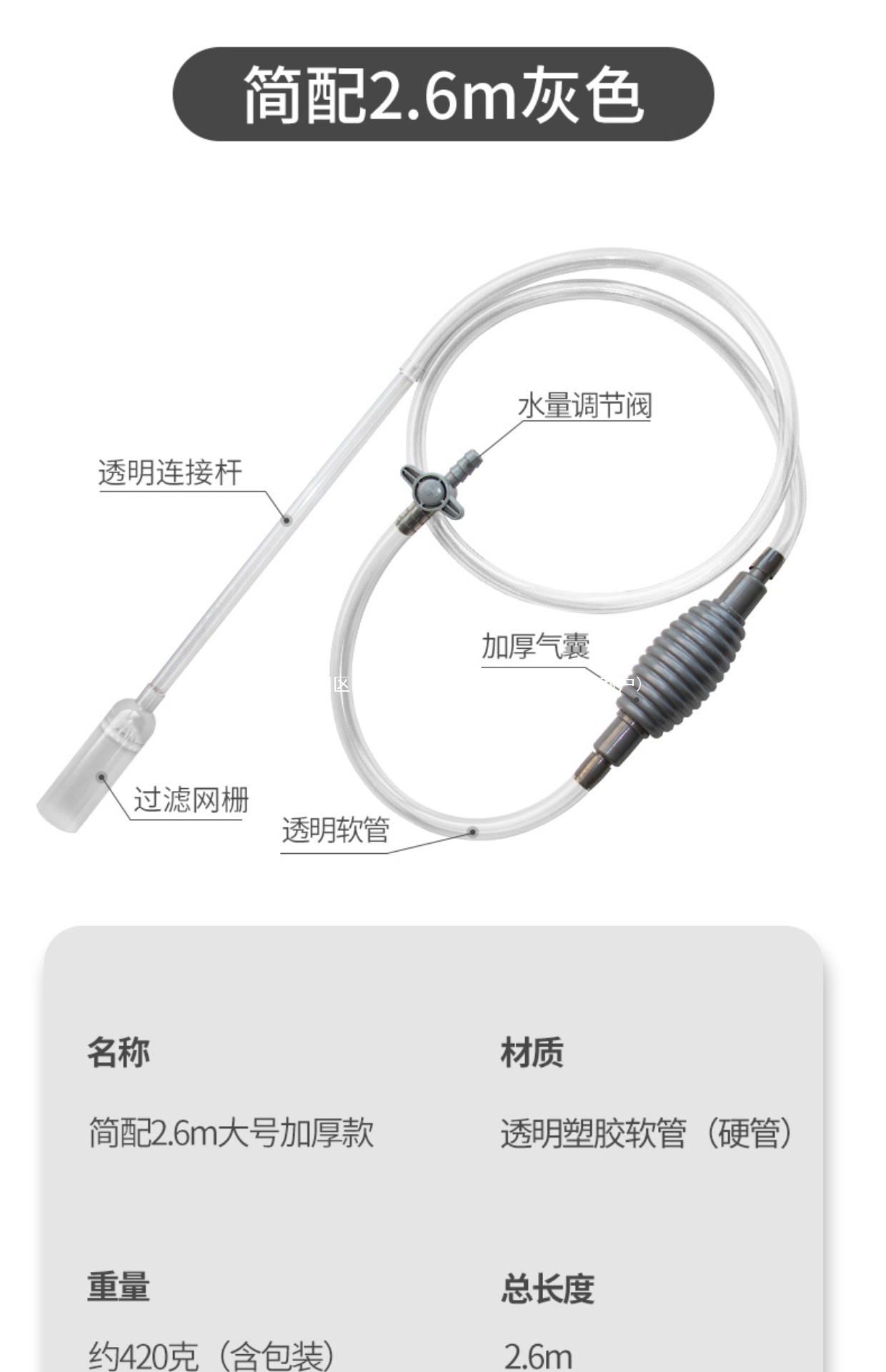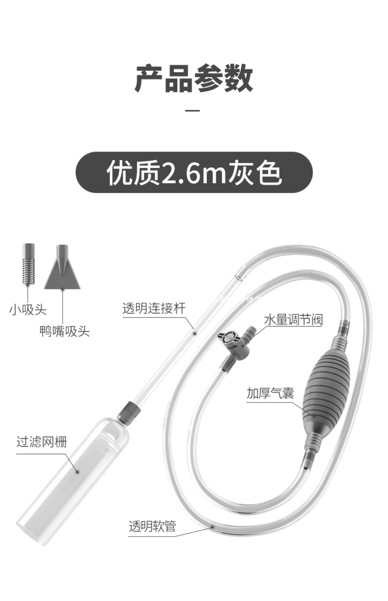 • [밸브가 있는 소형 탱크용] 2.2m 미니 그레이 + 고정 클립 + 소형 흡입 헤드 + 애완동물용 덕빌 헤드
