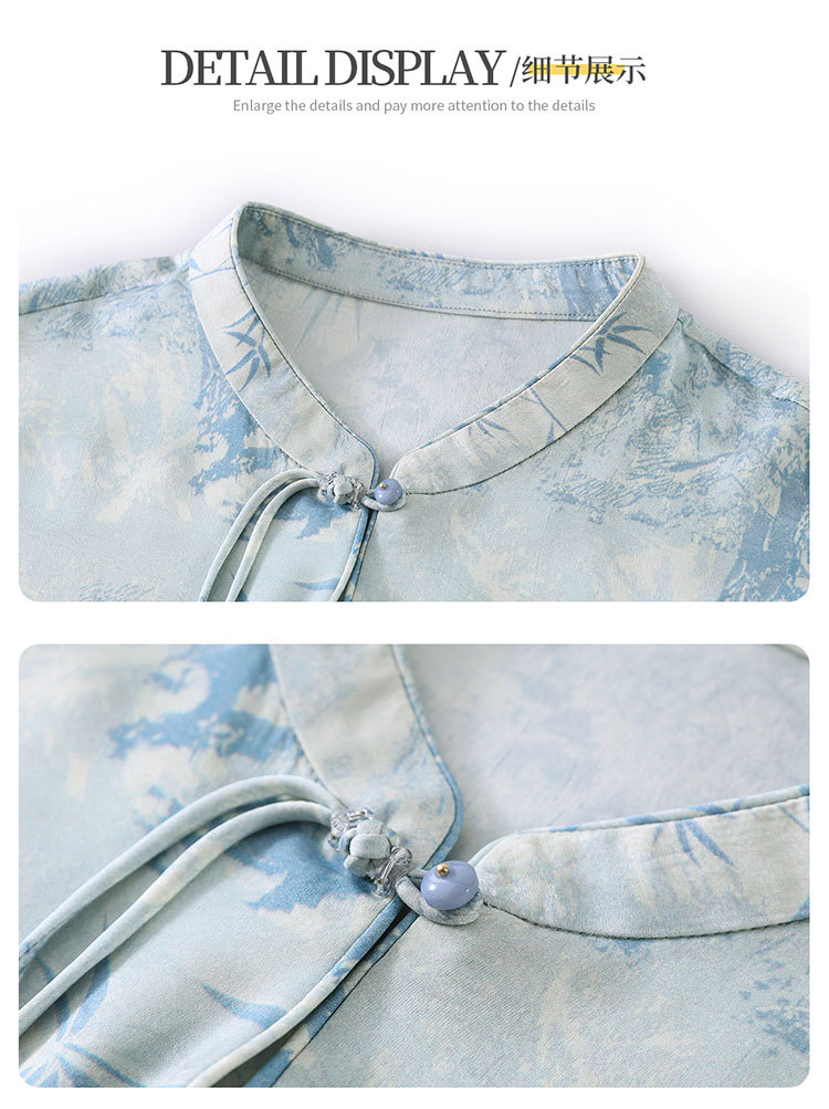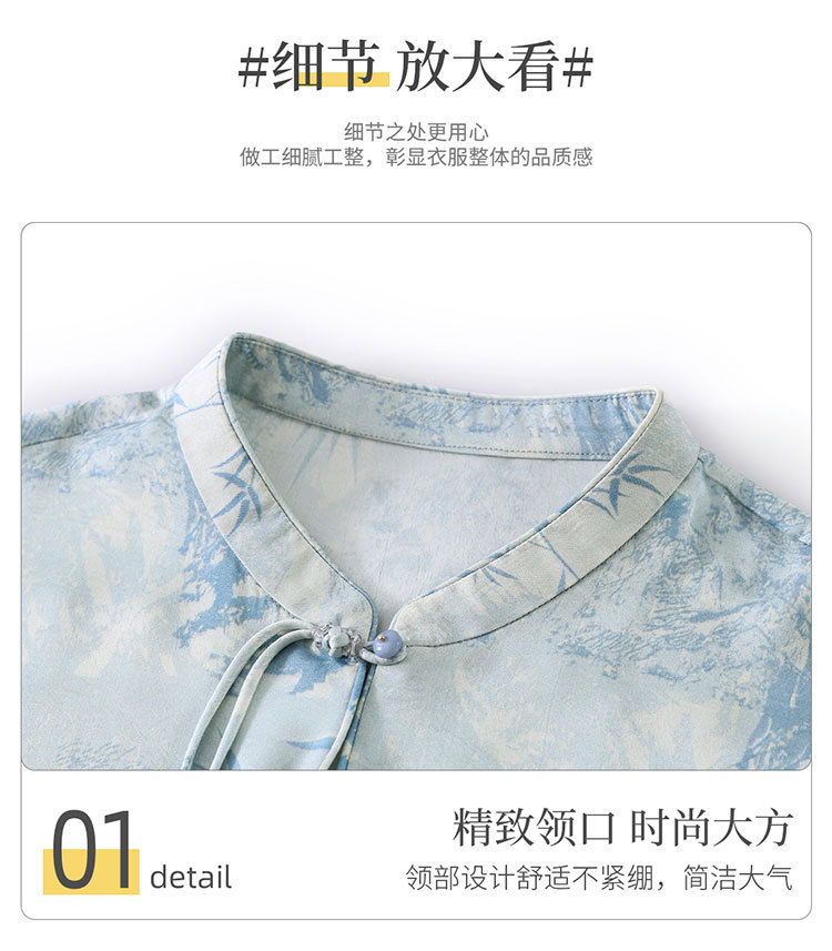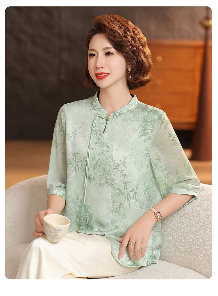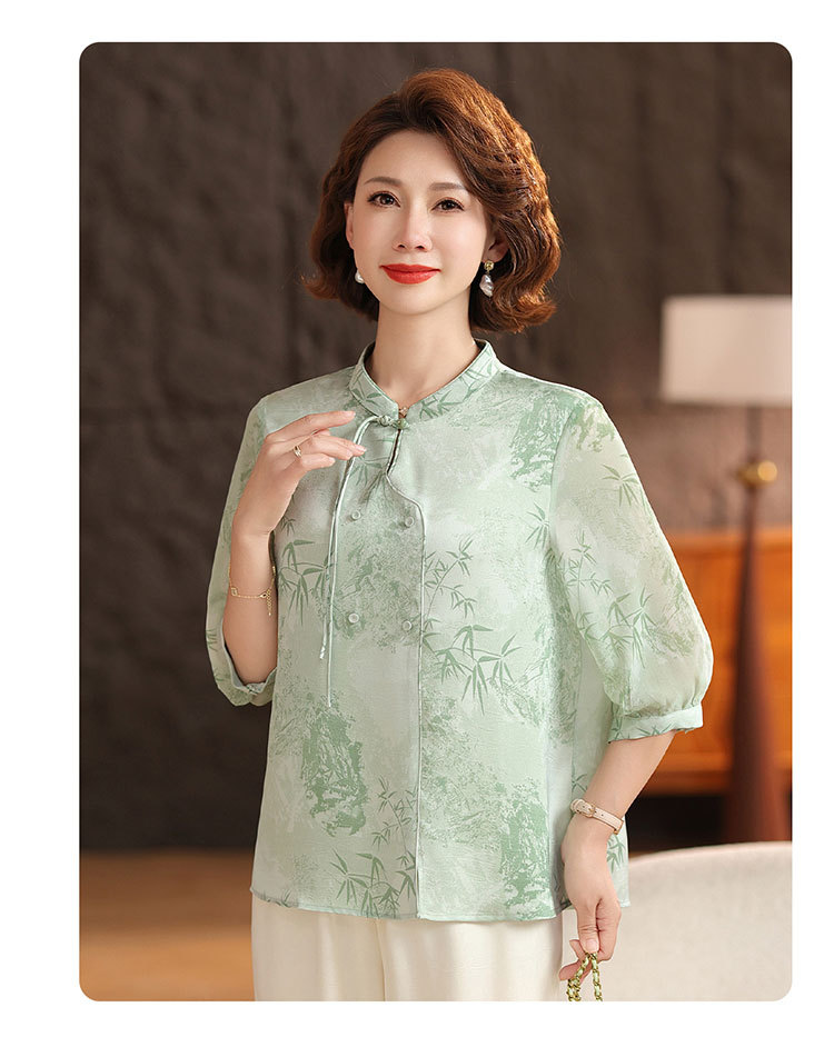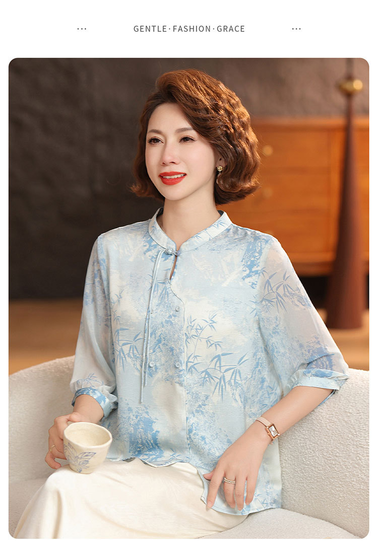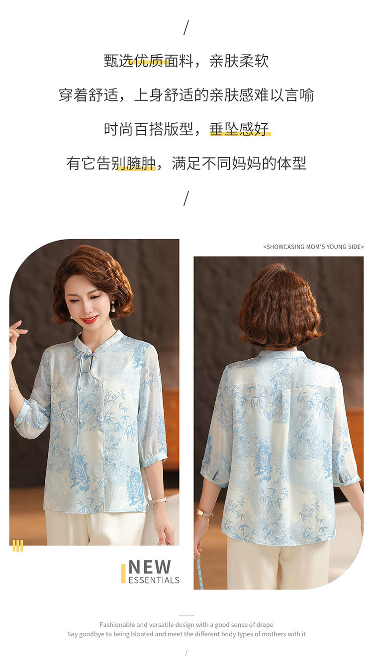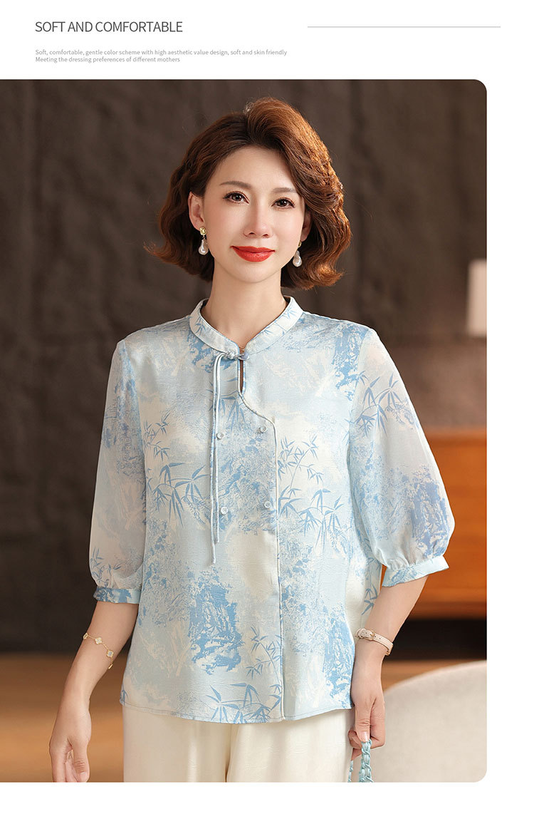 어머니 여름 원피스 세븐 슬리브 실크 셔츠 2025 새로운 스타일 여성 서양식 탑 중년 및 노인 여성 의류 국가 스타일 작은 셔츠
