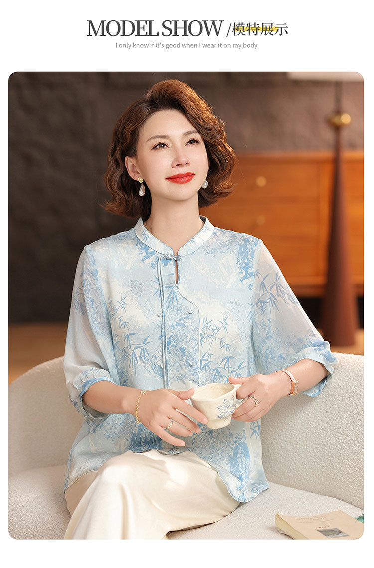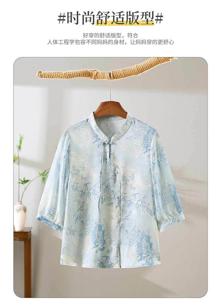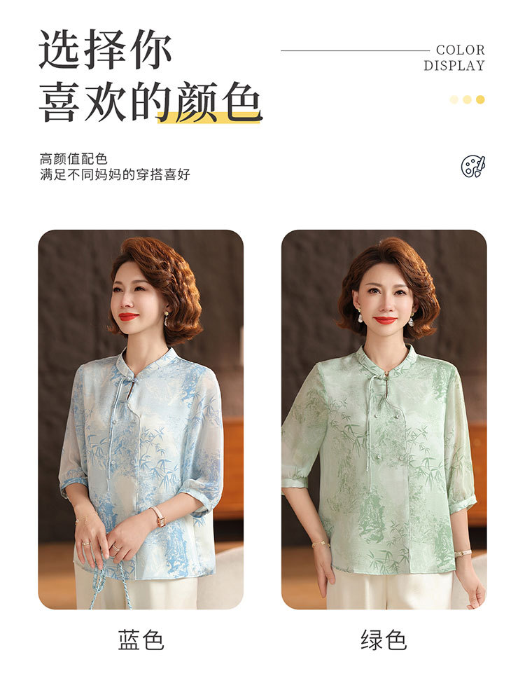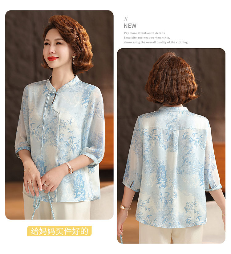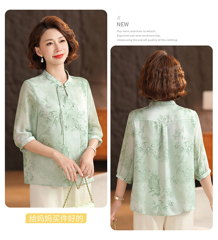 어머니 여름 원피스 세븐 슬리브 실크 셔츠 2025 새로운 스타일 여성 서양식 탑 중년 및 노인 여성 의류 국가 스타일 작은 셔츠스토어 가기