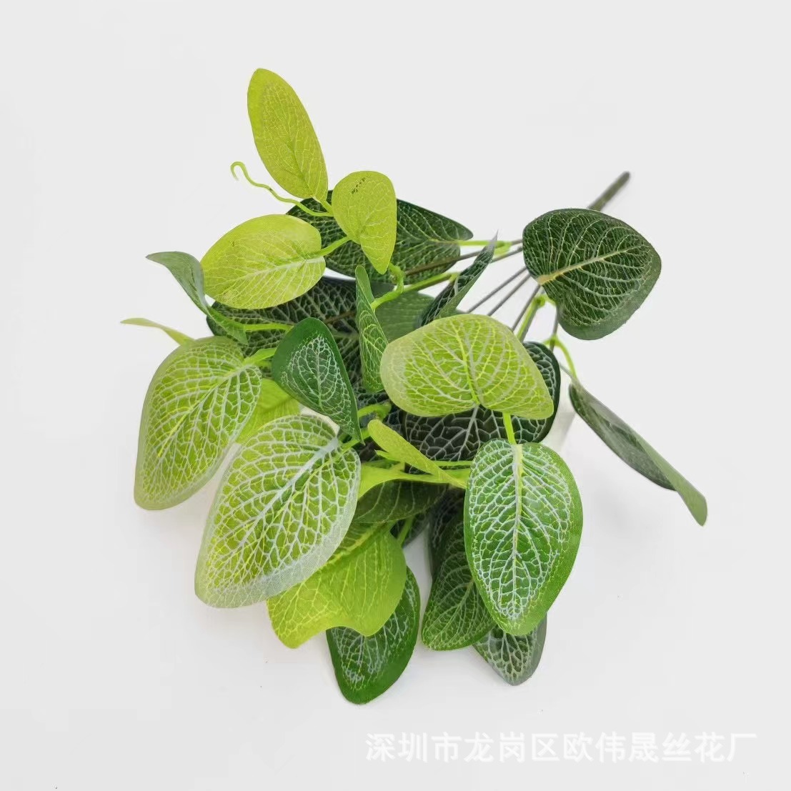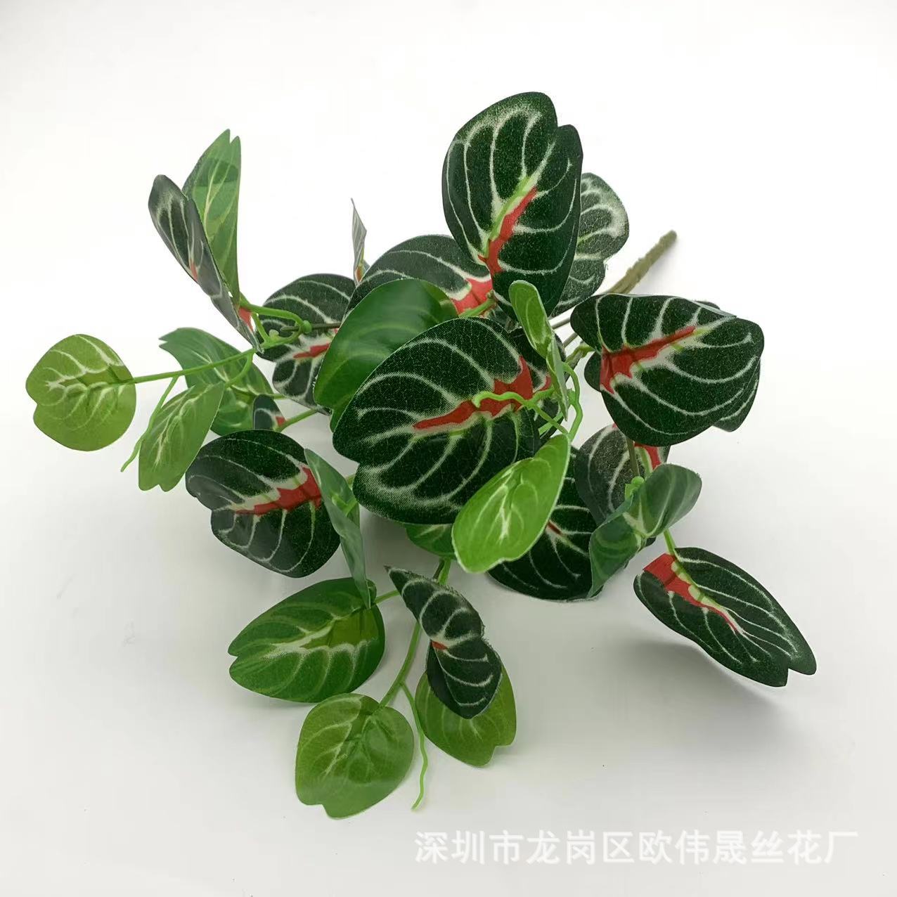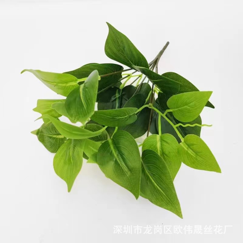 공장 직접 공급 7 pvc 시뮬레이션 녹색 식물 녹색 장미 스타 포인트 가짜 잎 선물 웨딩 룸 장식 장식품스토어 가기